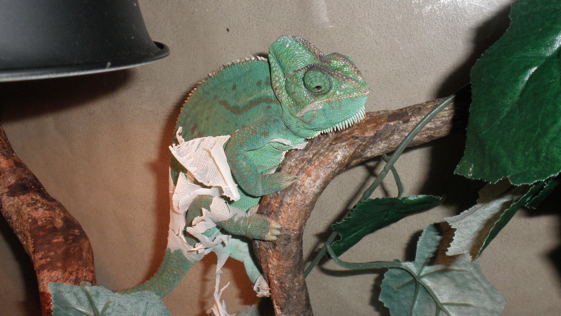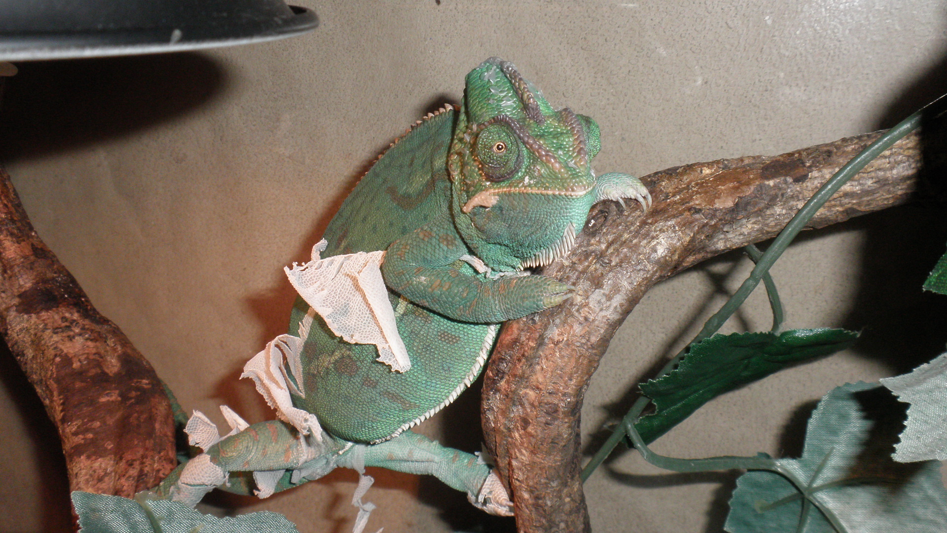 Prosím někoho kdo by mi poradil co s tím mám samičku chameleona jemenského je jí aso rok a půl a začala z ničeho nic mít obrovské boule na očích není schopná ulovit cvrčka a strašně špatně se jí kouká dopředu vylezou jí vždycky ty boule a začne to otírat o větve zorničky má celý krvavý posílám foto tak prosím o pomoc díky moc!!!!!!