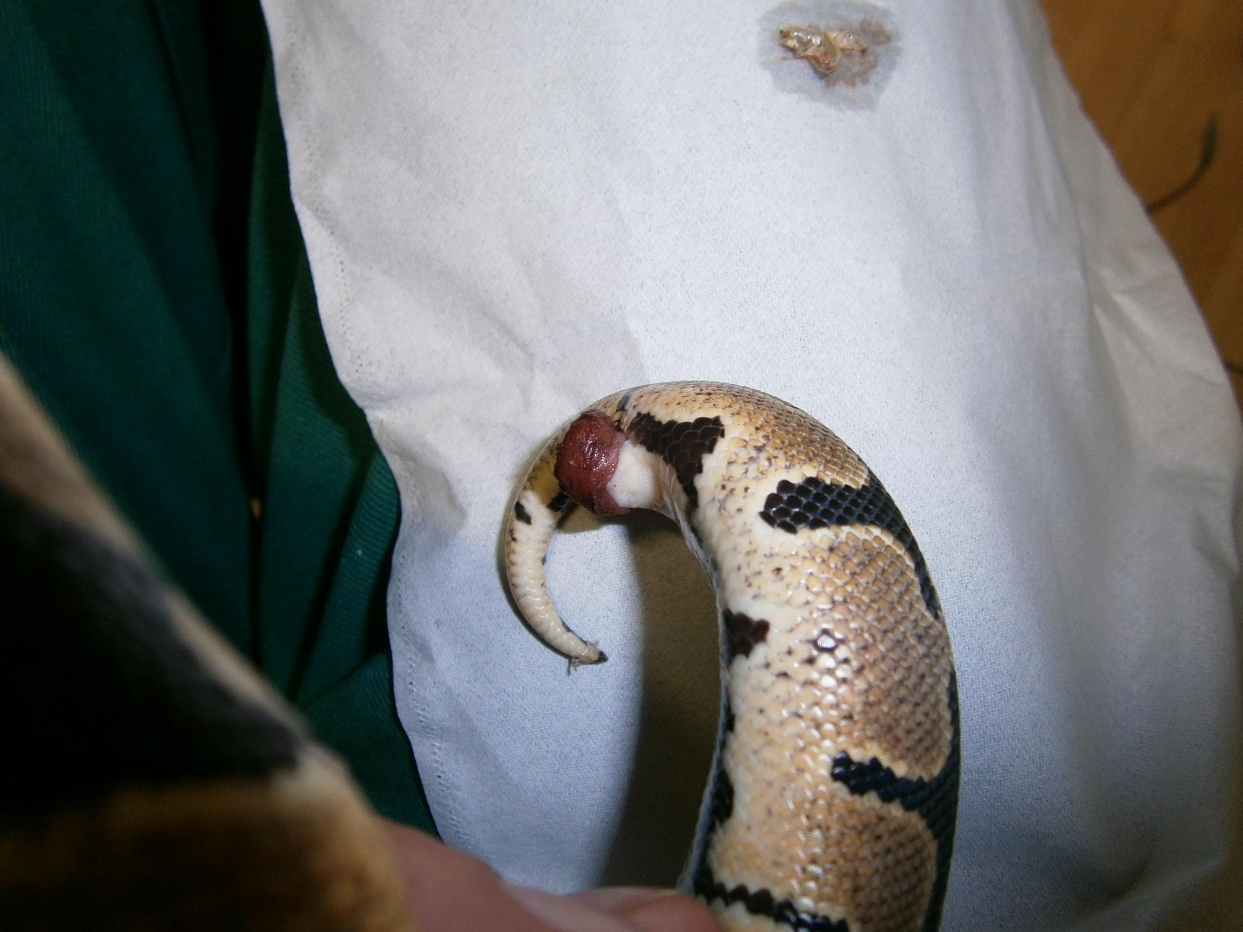 o hemipenisu jsem ještě neslyšela. přikládám foto. původně jsme si mysleli, že jsme hada překrmili. hned první den co jsme si hada dovezli(28.11) nám spapal hned myšku normální velikosti. 1.12 jsme zkusili druhou jen tak ze zajímavosti a hned ji zase snědla. to samé 4 a 9.12. tudíž velice často, ale jelikož jsme se dočetli že tito hadi netrpí přežíráním spíše naopak mají problémy s příjmáním potravy sme si mysleli, že jsou myšky na hada 70cm asi malé a má jen pořád hlad. had je zakoupen ve zverimexu a oni ji měli myslím z farmy. hada jsme dali do menší krabice jen s ubrousky do "karantény" a kloaku jsme pozorovali. vypadá naprosto v pořádku. po vyndání had lamozil jakoby nic. i jeden bobek sme v krabici našli a kloaka držela. bílý.jen ještě malý dotaz,který jsem nikde nevyčetla. krajta nám udělala už 3 barvy bobků. hnědou,bílou a žlutou. co je typické a co ne?opravdu mockrát děkuji za odpověď
