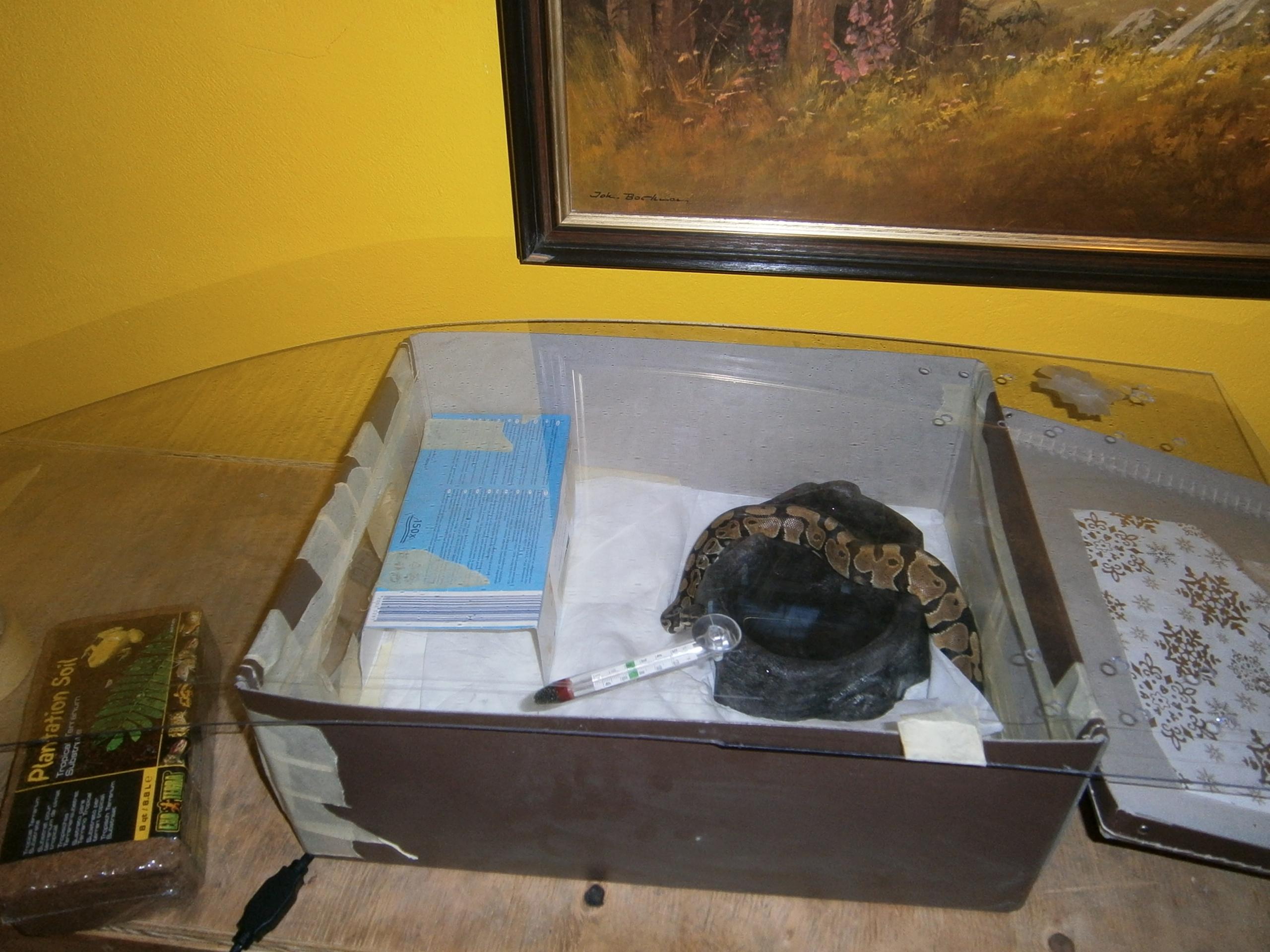 Dajte ho do karantenneho terarka. Reginy niesu hady, ktore nutne potrebuju prirodne terarko. Stacia im utierky, miska s vodou, ukryt (rozpolen kvetinac) a samozrejme potrebne podmienky (teplota a vlhkost). Nevyzera to sice najlepsie, ale v takychto pripadoch je to to najlepsie co mozete spravit. V normalnom terarku, ak sa mu to opet stane tak moze libnocel sposobit zapal.