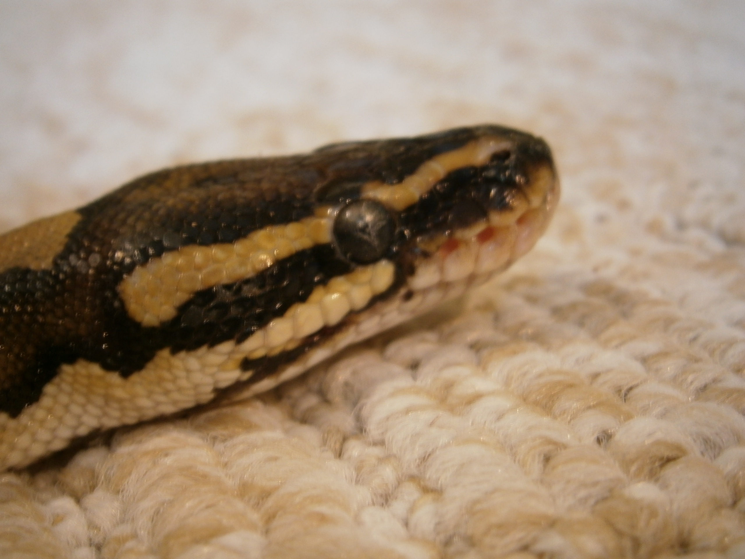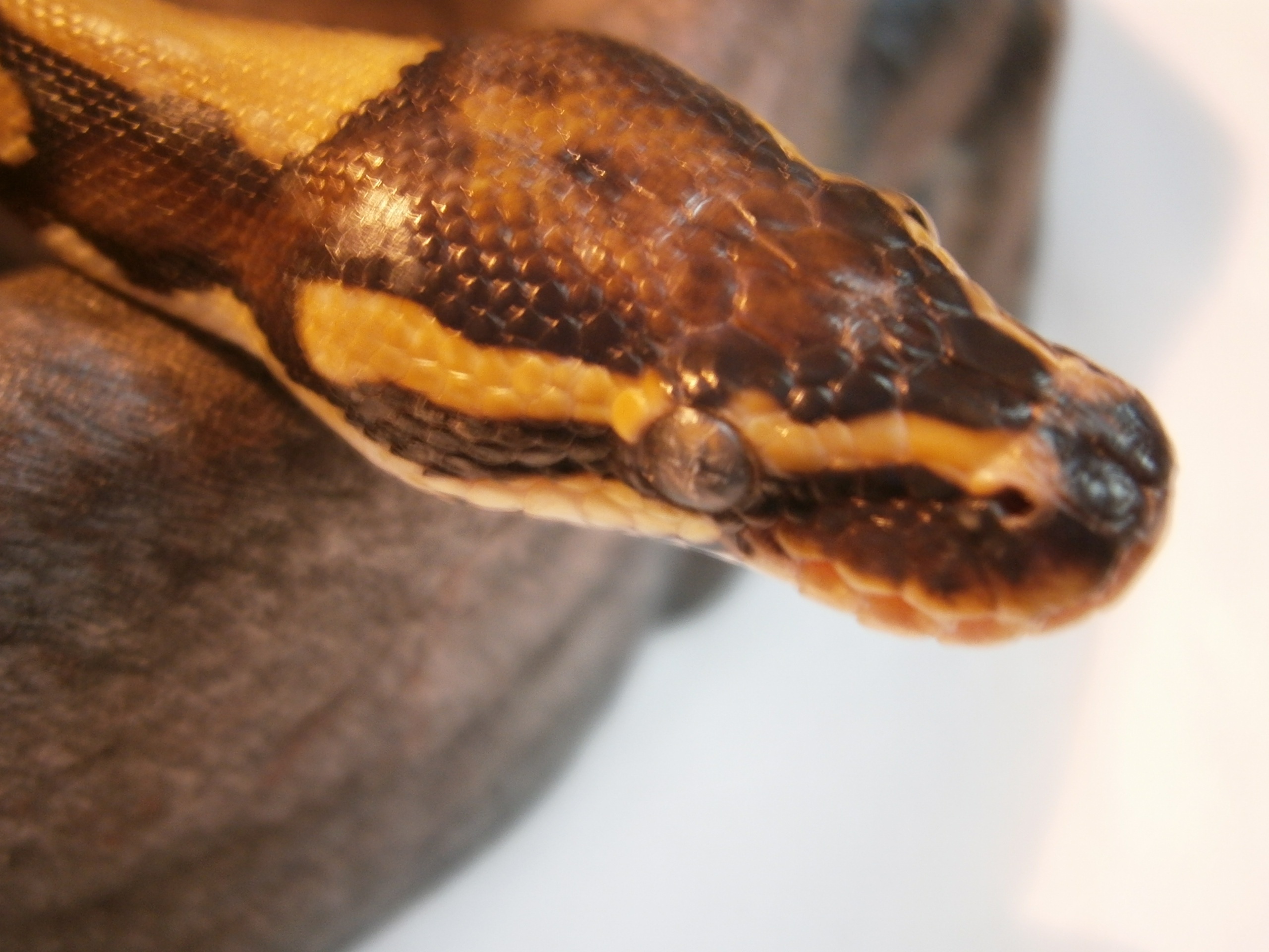 jinak zkoušeli jsme sloupnout to oko. vlhčili sme ho vodou, pak otírali kapesníkem,vatovou tyčinkou i tou jehlou ale nedařilo se.had pak začal být velice nervozní tak mu dáme oddech a zkusíme to znovu, případně uděláme foto.