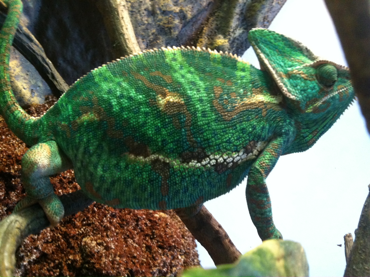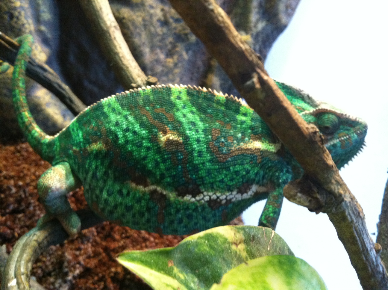 Ja mám tiež chameleona jemenského a tiež mi zlieza dolu a hrabe.A viem prečo.Lebo má obdobie párenia.Je to normálne.