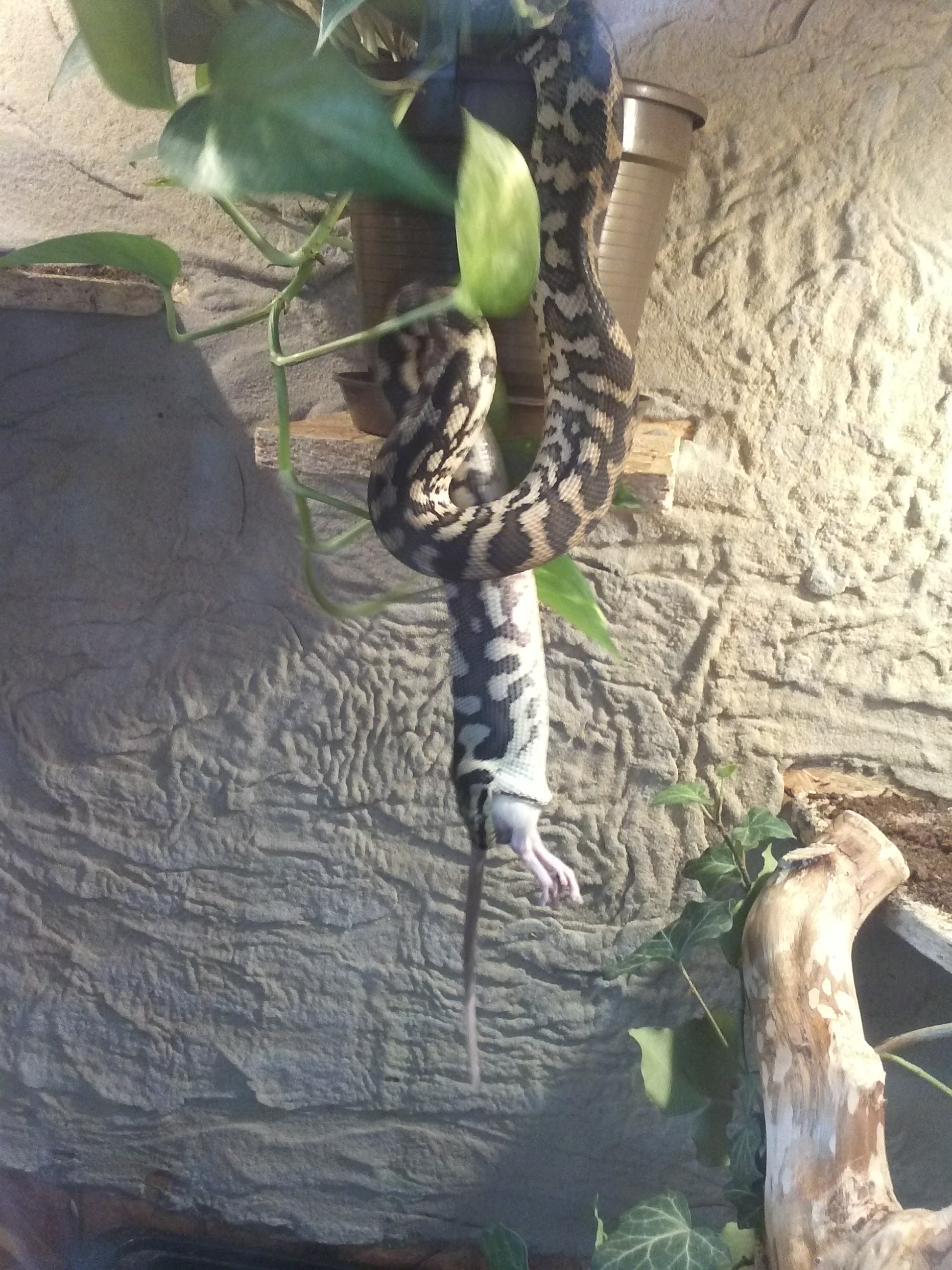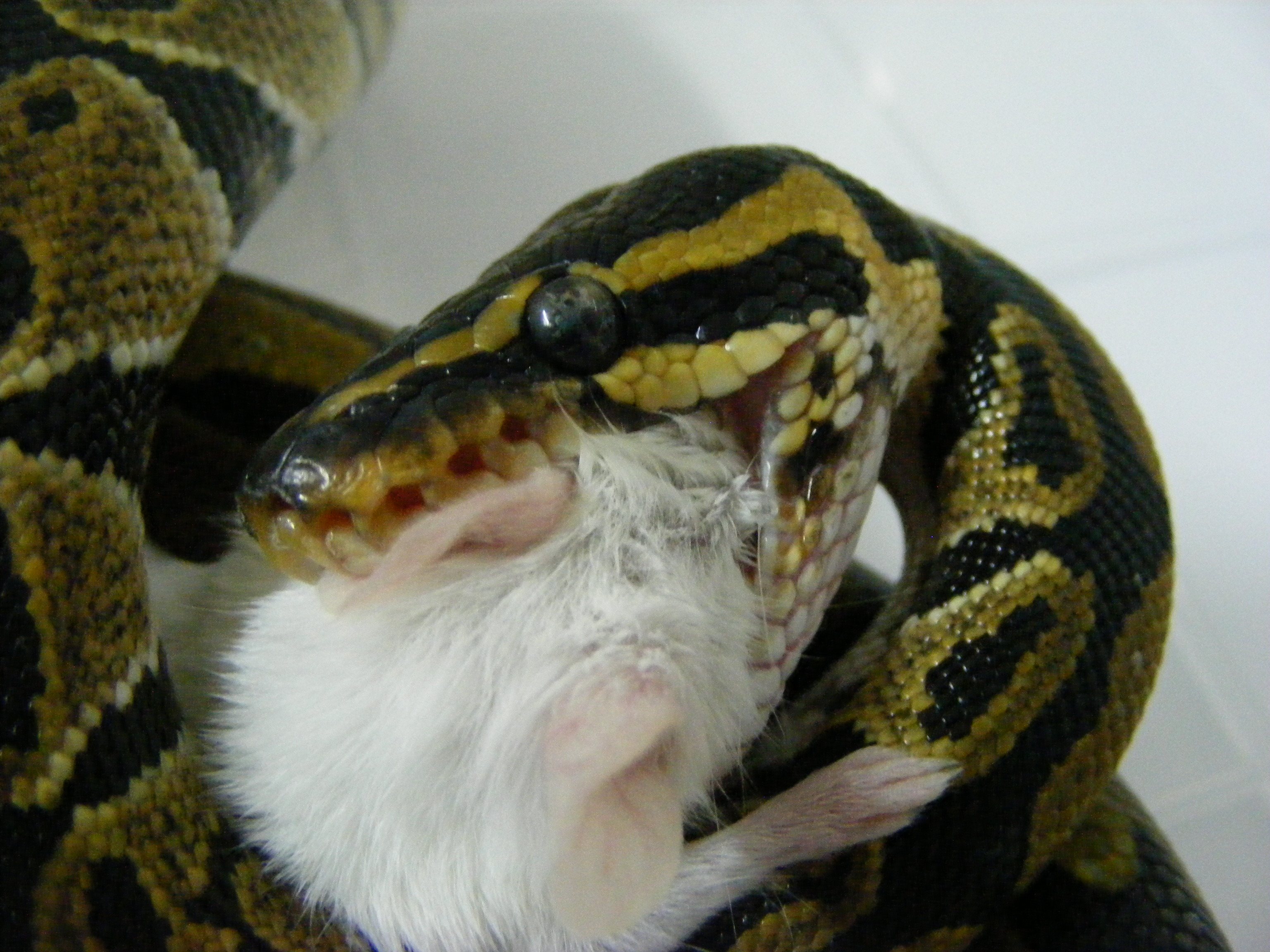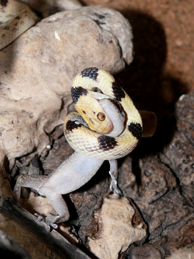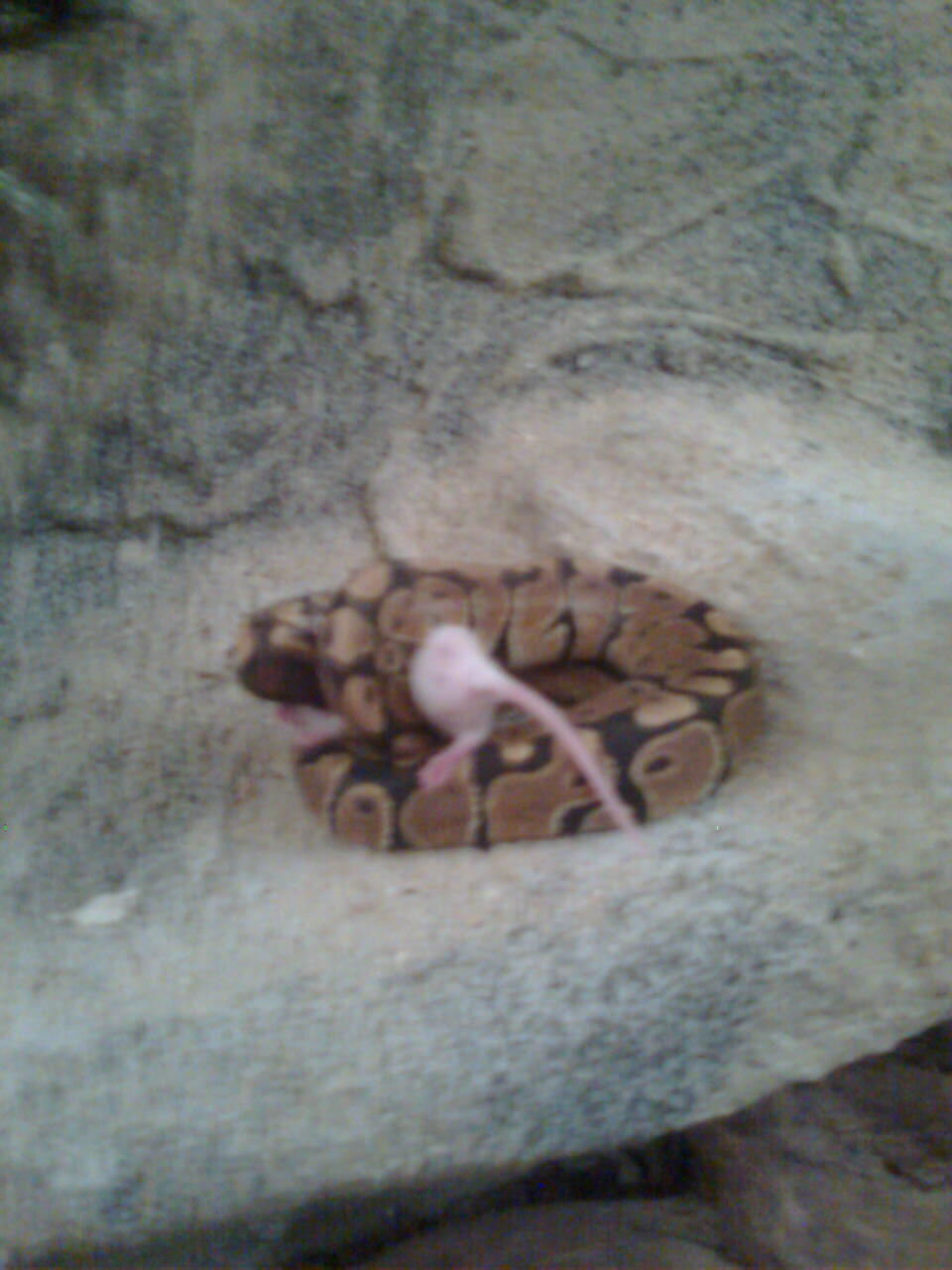 No právě ani ne tak kořist, jako naservírovaný. Žádná práce s lovem. Ale chuť byla po 10 denním půstu. Teď je čerstvě svlečený, tak se nacpává. Vyprazdňování už máme taky za sebou. S tou konzistencí a vůní jsi měla naprostou pravdu