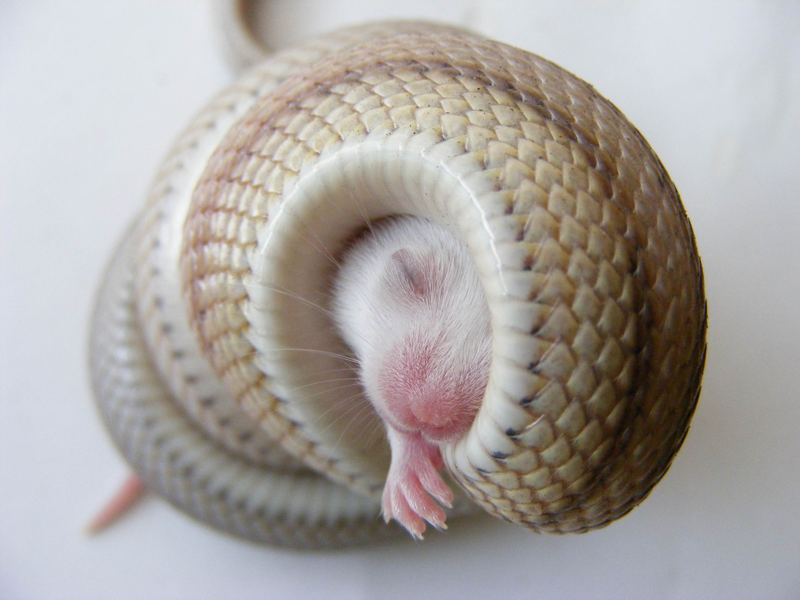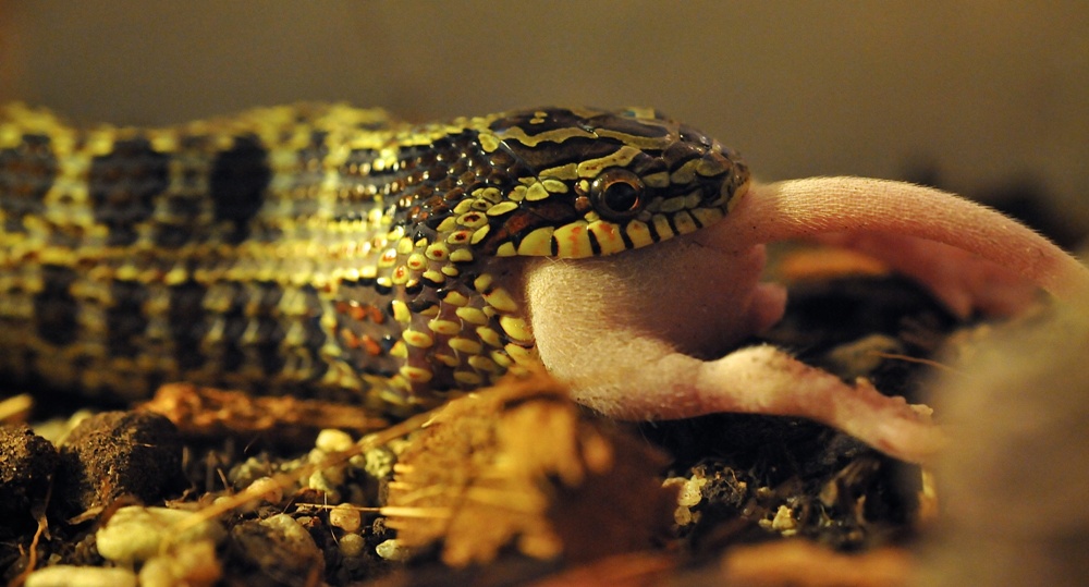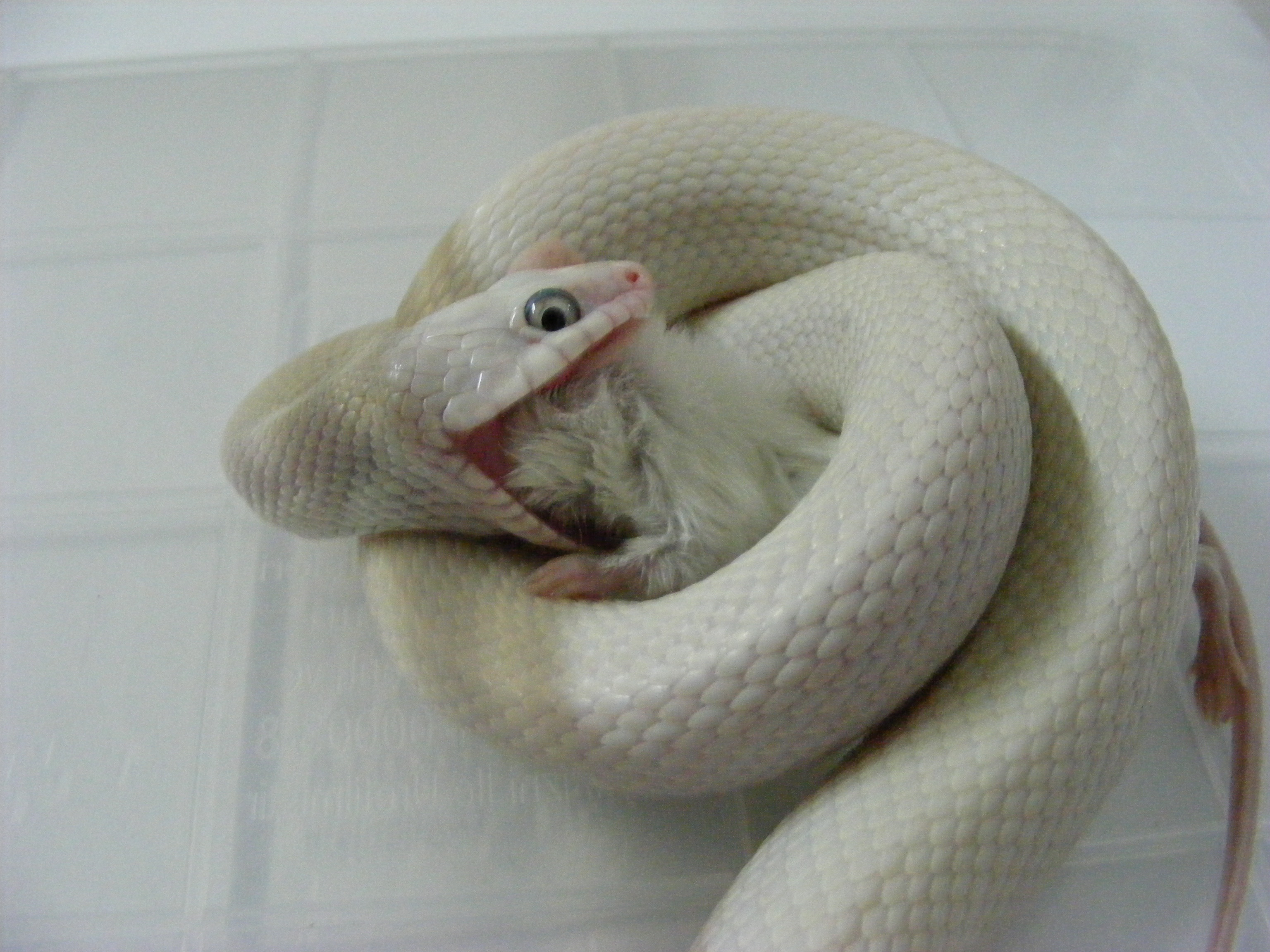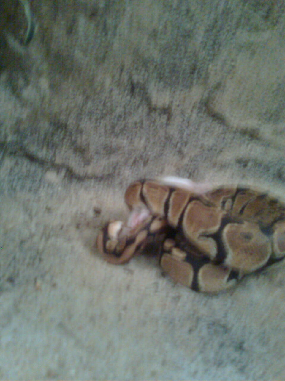 No právě ani ne tak kořist, jako naservírovaný. Žádná práce s lovem. Ale chuť byla po 10 denním půstu. Teď je čerstvě svlečený, tak se nacpává. Vyprazdňování už máme taky za sebou. S tou konzistencí a vůní jsi měla naprostou pravdu