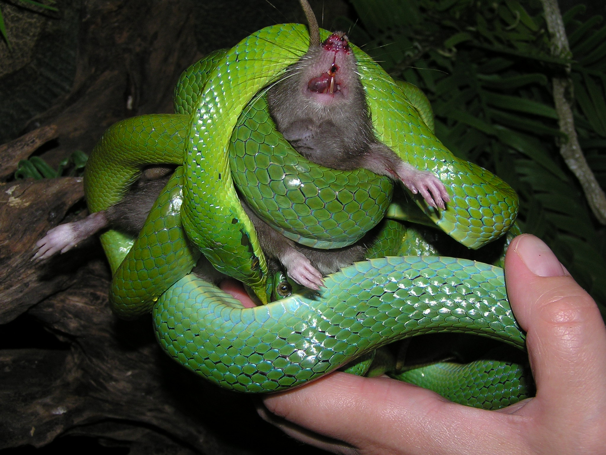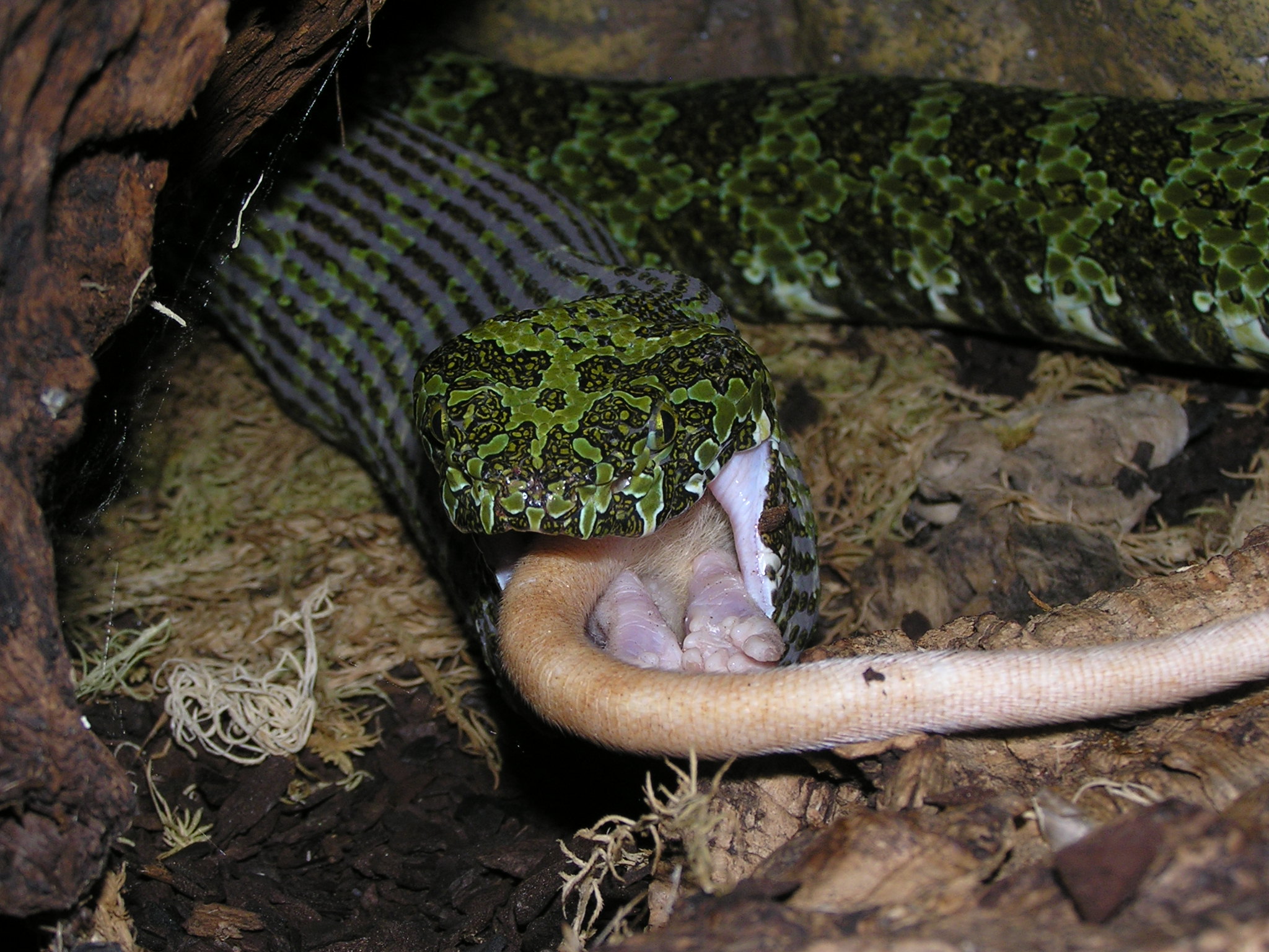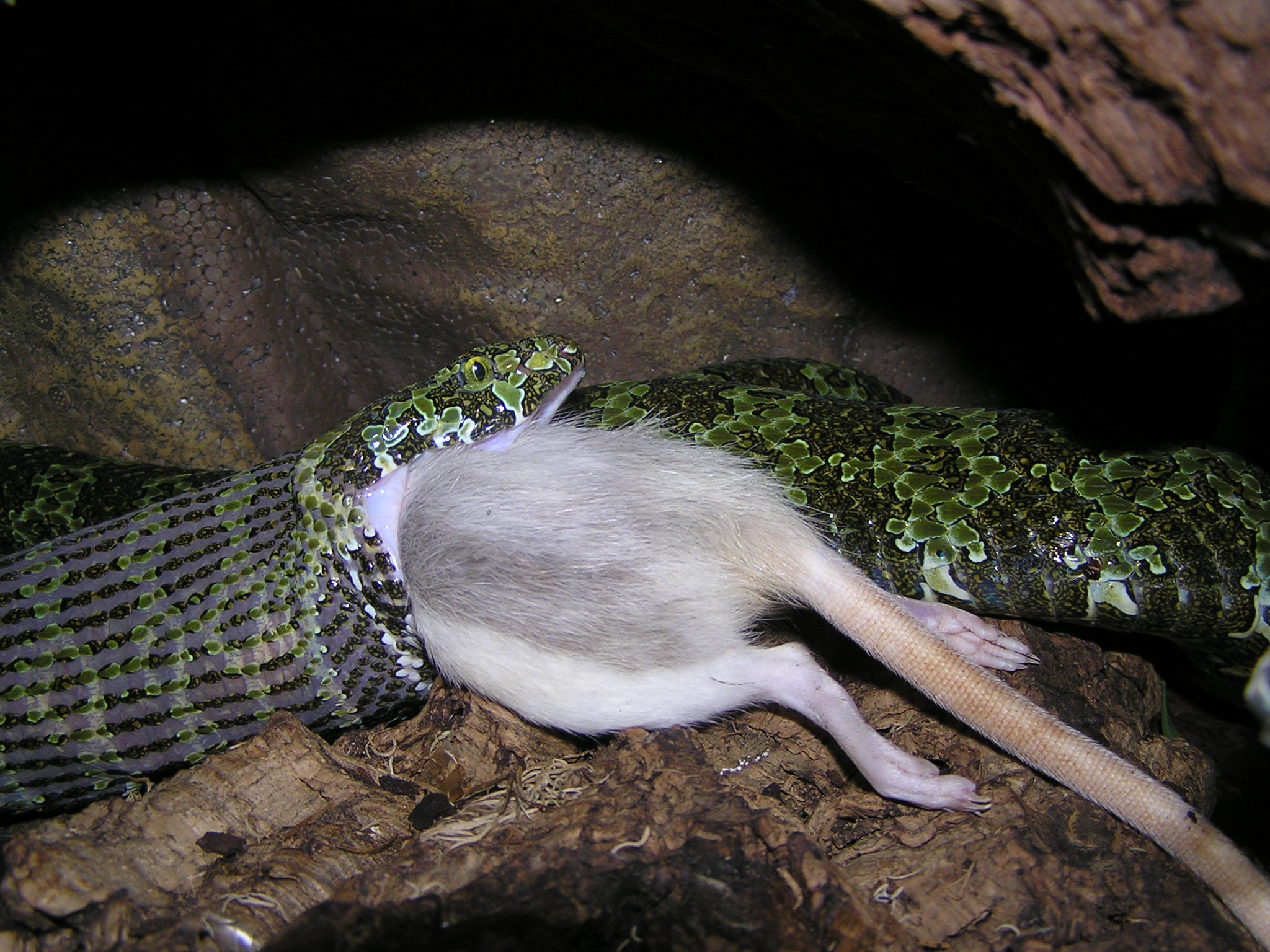 Pak je další typ sluníčkářskýho záchranáře, který jaksi nechápe systém potravního řetězce a pohoršuje se nad tim, že existujou potravní specialisti, co žerou třeba jen ještěrky, chamíky a nevezmou třeba myš...viz Radarův boomslang...pak jsou i lidi, co odsuzujou plošně všechny hady za to, že žerou zvířátka, ale to už jsme jinde, tady už se jedná o P. lacus