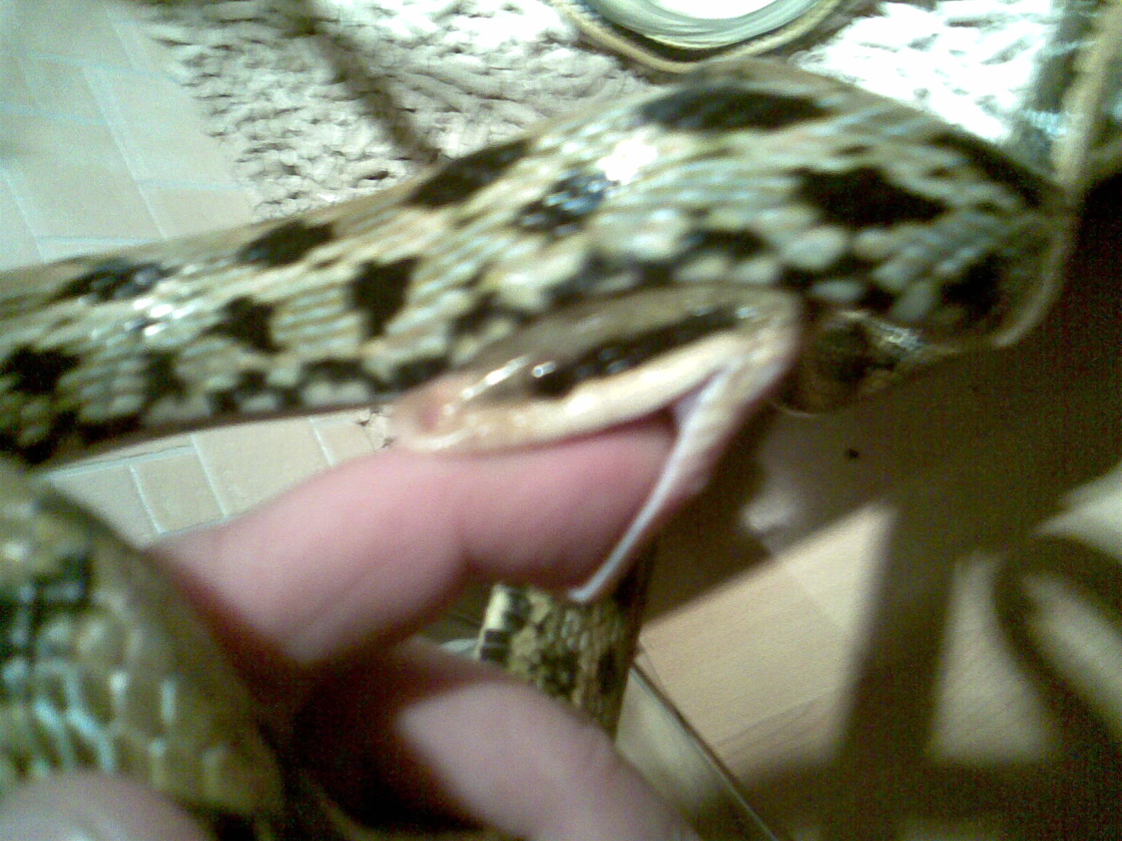 Diky M.A.S.H. Ako pise Cejna. Pri krmeni mi prefrcala pomedzi skla a cez moje plece. Ked som sa otocil, videl som uz len ako roztiahnuta dopadla na zem a zmizla za postelou. 3/4 hodiny chytania na kolenach. Keby som ich tak dlho nezhanal, asi by som ju roztrhol od nervov ako hada A pokracovanie rozpravky je, ze mi skocila po oku