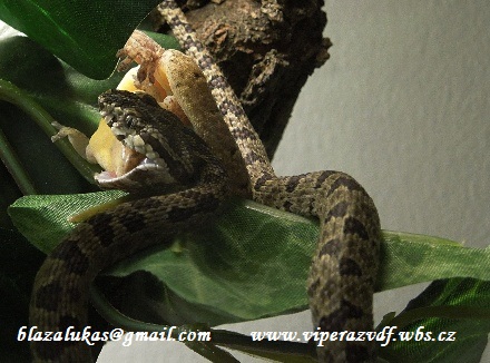 Tato si dala minule 2, aj dnes 2. Druha zozrala 2 dni po ubytovani 2 a ide do zvleku. Len su zatial dost plache. Kurna, musim este rozsirit chov mastomysi, tie co mam nestihaju...