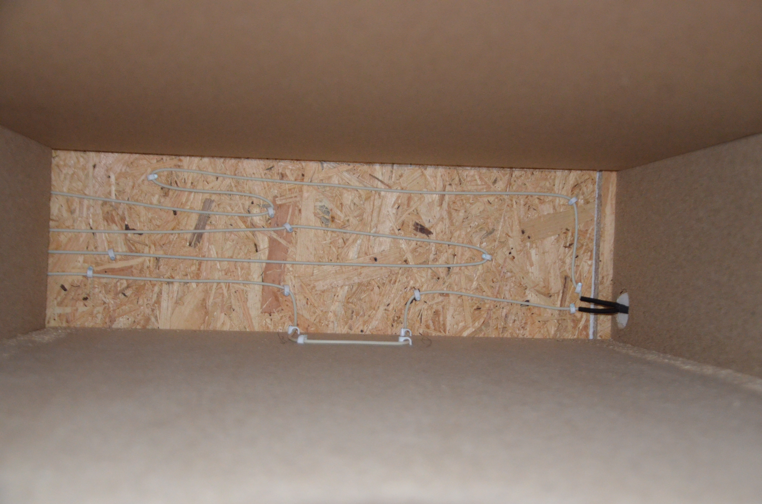 Pokud kabel ,tak vyfrezovat do police drazku kam se polozi .. ja pouzivam top.desky prilepene oboust…