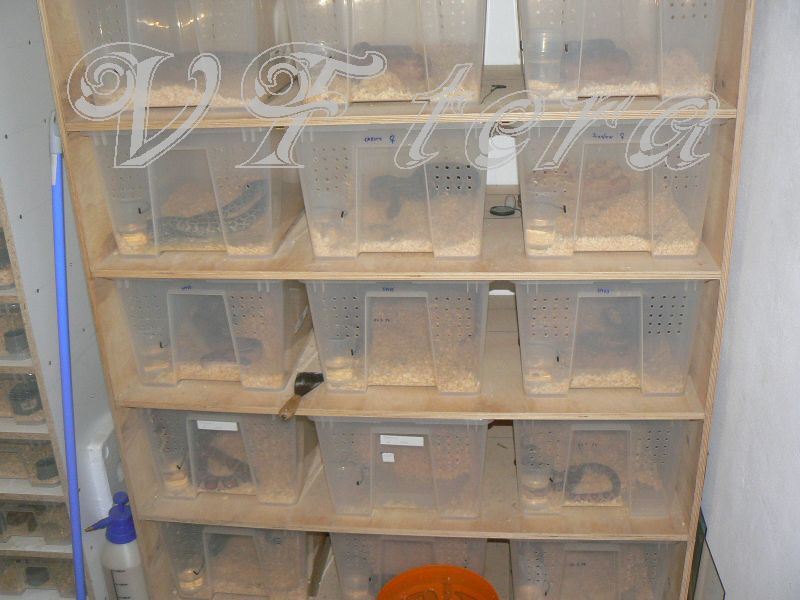 Ahoj, chtěl jsem se zeptat, jaké plastové boxy používáte pro dospělé hady a pro háďata. Chtěl bych si vytvořit regál z OSB desek a do polic dát plastové bedny s hady. Jedná se o menší užovky a korálovky, většinou adultní délky 90-120 cm. Našel jsem několik různých průhledných boxů (chci, aby na hady bylo vidět, abych jim nemusel pořád lézt dovnitř), s některými mám i zkušenosti, ale spíše pro háďata (zejména od firmy Orion). Jako nejvhodnější pro dospělce jsem našel od Heidrunu velikost 52x37x26 cm, tuším,že to má 38 litrů. V každém boxu bude jeden had + tam budu mít vedle nějaké větší bedny na páření. Díky moc za postřehy. Petr
