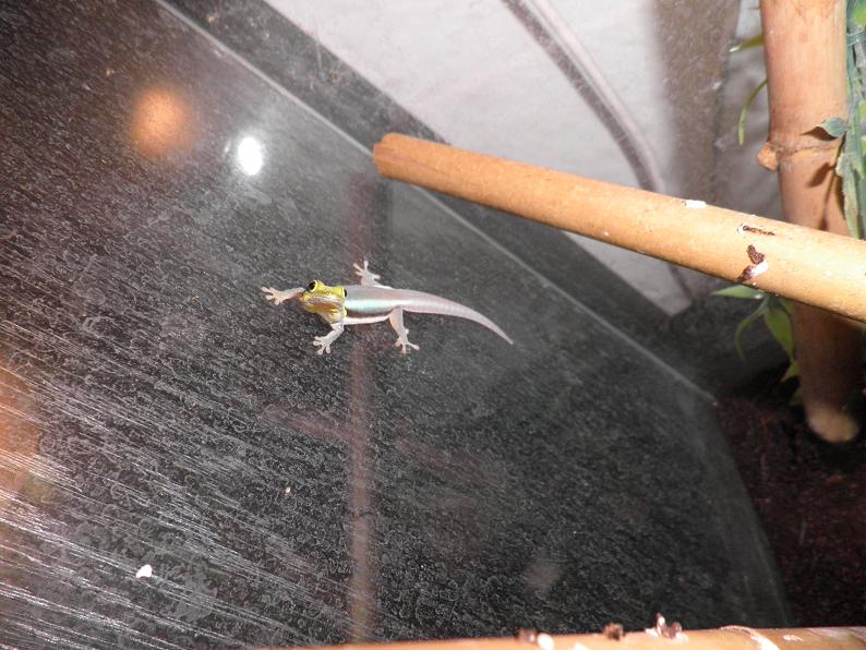 mládě Phelsuma robertmertensi.Na fotkách to zbarvení není nic moc,ve skutečnosti jsou daleko barevnější.