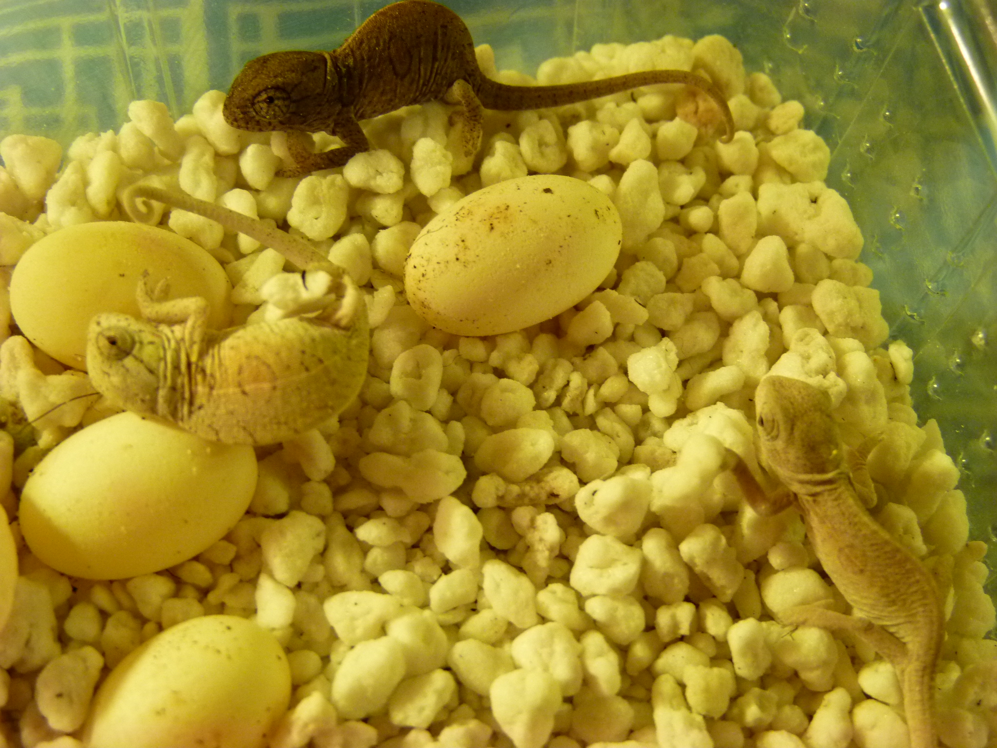 Potom se nějak přestalo dařit, dokupoval jsem další odchytová zvířata a moc to nešlo. Nějaké odchovy sice byly, ale když jsem si nějaké nechal, tak jsem pořád řešil zdravotní problémy. No a když mi umřela poslední samice, tak jsem se rozhodl, že pořídím raději nějaké nové lokality pardalisů. Vajíčka jsem nechal, tak a vůbec jsem nedoufal, že se něco vylíhne... no a teď vykoukli tihle tři a nabourali mi moje plány.