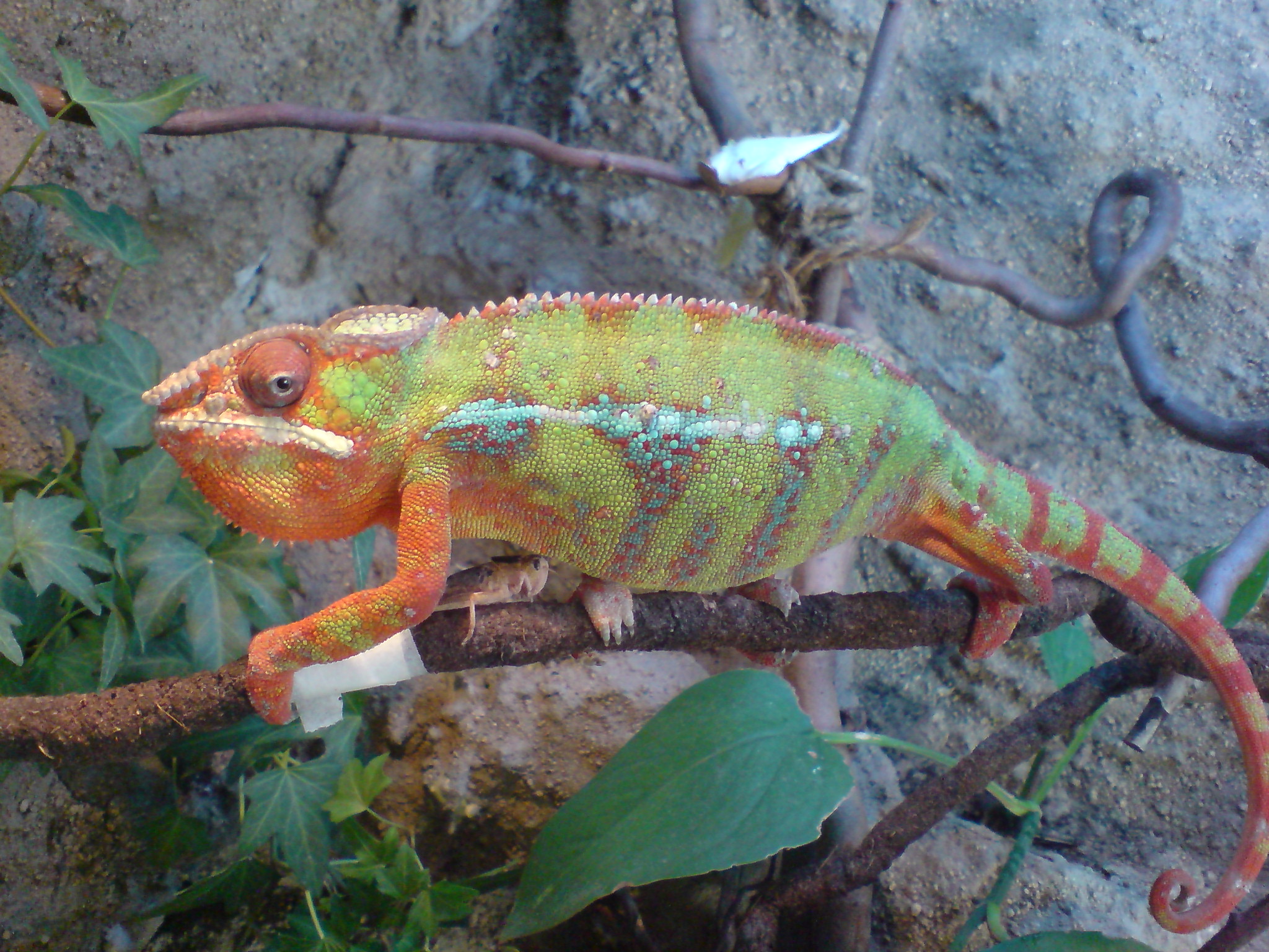 tak po vyndani te velke parady z tlamy, sem si myslel ze dnes treba zacne pomalu strilet.. protoze ten pucek hnisu mu urcite tlacil na jazylku. bohuzel opet po tom jde jak jesterka.. zadne strileni..takze sem musel opet prilepit sarance lepici paskou k vetvi.vsiml jsem si ze pootrvita tlamku.. dnes jsem rozpustil vit c v trose vodody v injekcni strikacce.. jen se knemu se strikackou priblizim..okamzite mu zalezou oci..takze na to prdim.. pockam az bude zvejkat sarance a prihodim kousek céčka.janak pro ten peroxid pojedu jeste dnes..doufam ze to pomuze.prikladam foto