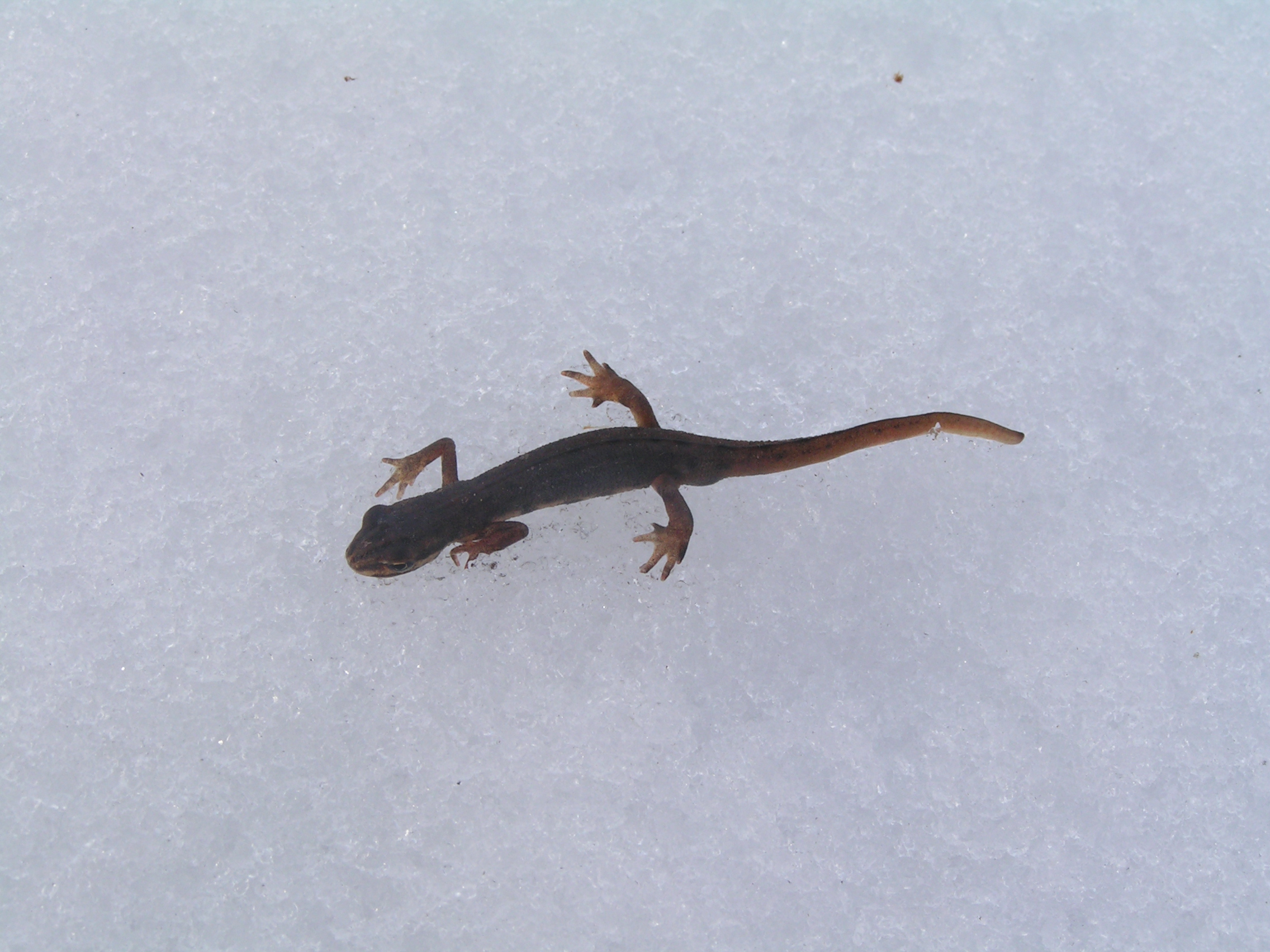 viaceré naše obojživelníky sú celkom odolné voči chladu a teploty okolo bodu mrazu krátkodobo zvládajú. na priložených fotkách je Triturus/Lissotriton/ vulgaris nájdený v prvej polovici februára 2009. Bolo vtedy krátkodobé oteplenie. Našiel som ho prechádzať po snehu, bol síce spomalený (reklamu na Duracell by nespravil