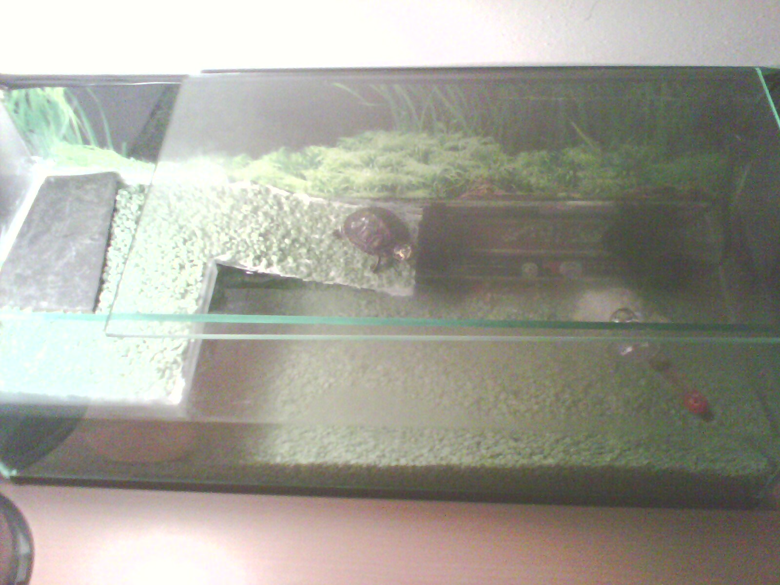 No je pravda že štěrk pořád přehrabávala nebo tak něco, ale v poslední době už ani ne. Jinak teda chápu to dobře že pokud se voda rychla kazí tak to může být klidně štěrkem protože se v něm usazují nečistoty? Co se týká rostlin tak jsem tam ani neměl na začátku jsem tam měl takové umělé, ale ty šli do pryč. Zatím mám želvu v menší ubikaci viz foto. V nejbližší době bych chtěl postavit větší. Co je mysleno tím "hygienické nádrže" ?