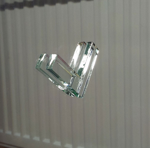 Je uchyceno skleněnými kolíky, které jsou přilepené oboustrannou lepící páskou.
