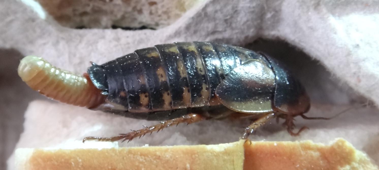 2.šváb dubia hlavní výhoda vůbec nesmrdí snad ze všech krmných švábů, nelezou po plastu a skle,ale opravdu se pomalu množí a člověk musí mít velkou kolonii. U mě nevýhoda hned se zahrabávaj při krmení docel tvrdá slupka švába, ideál přitápět pro množení