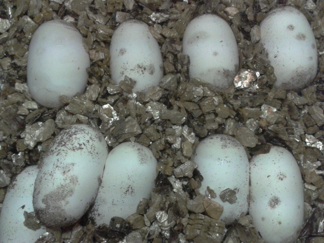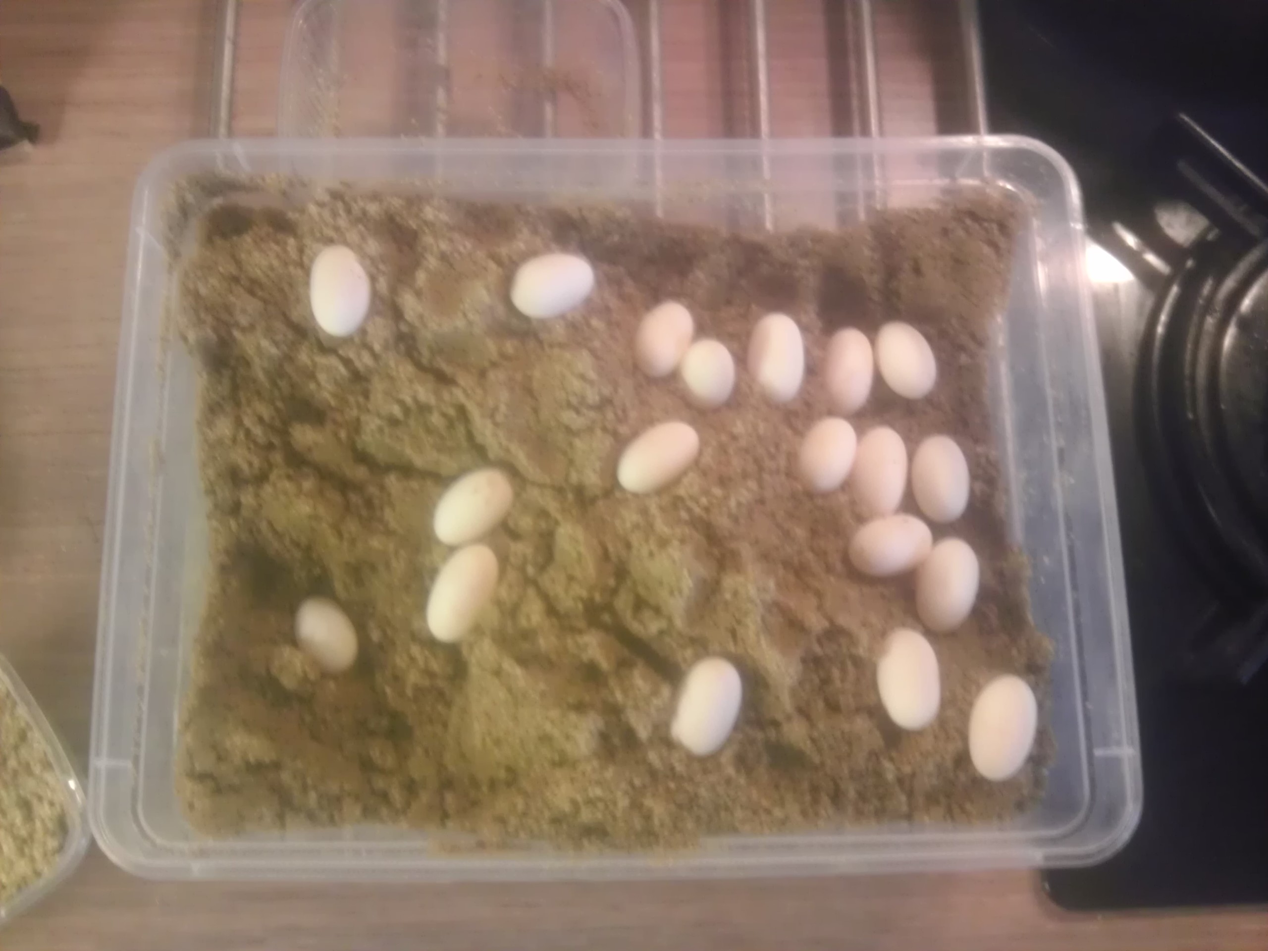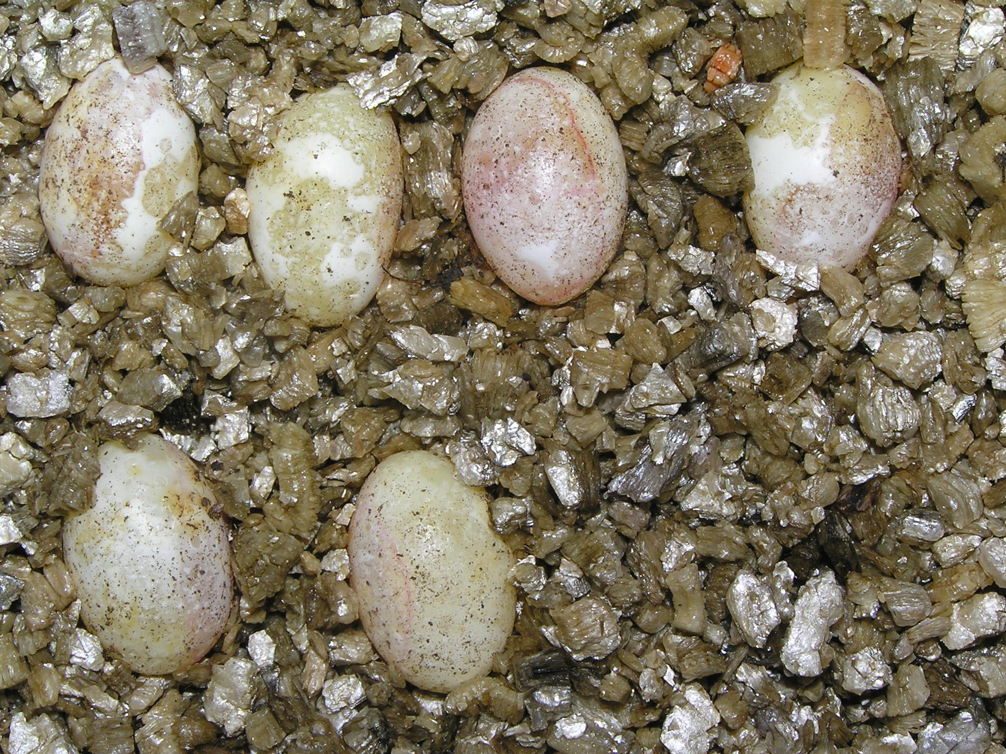 když pominu 2 neoplozené ciliatí snůšky, tak tohle je u našich chovanců vůbec první snůška v historii, ze které by něco mohlo s trochou štěstí koukat :).