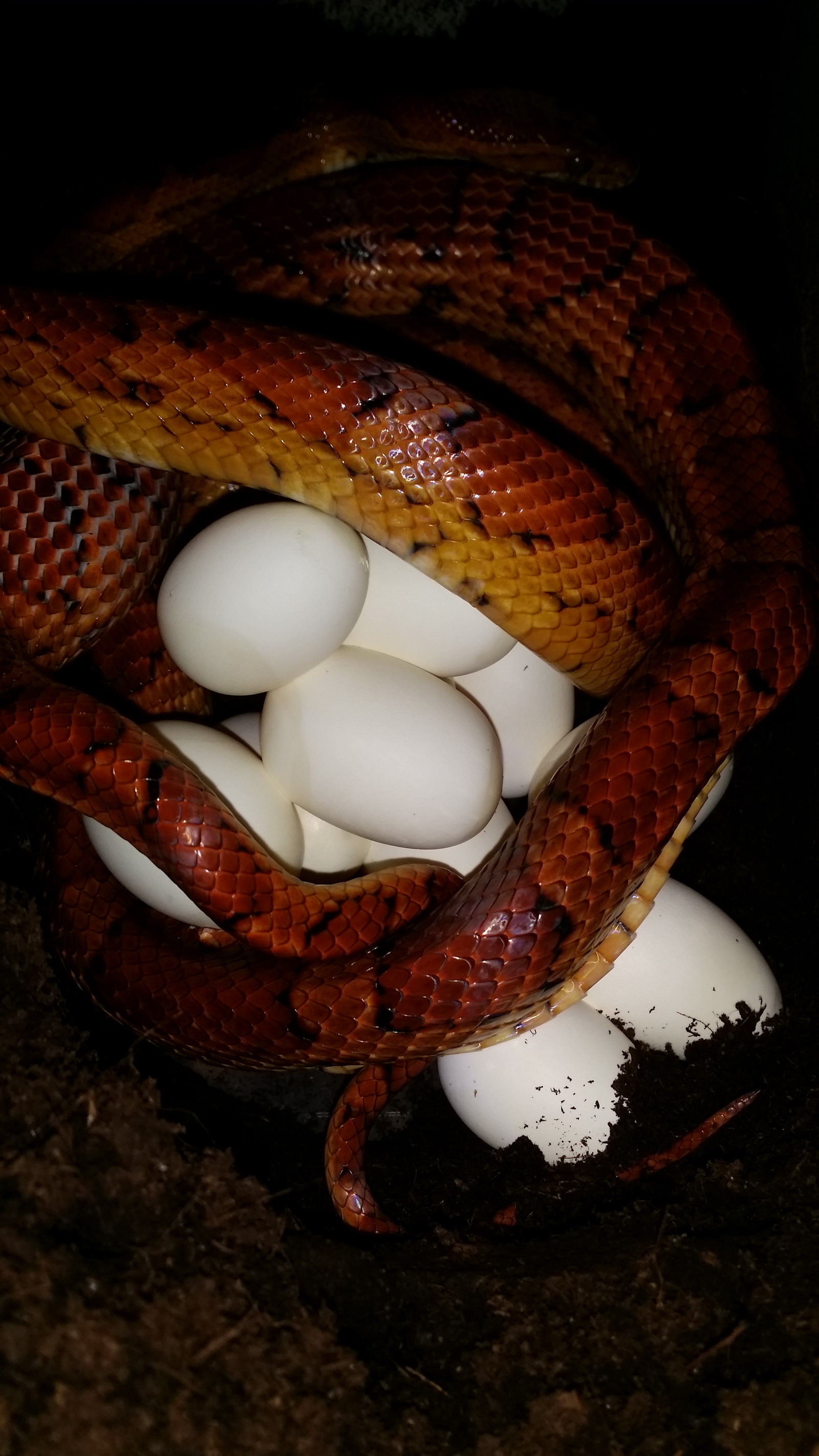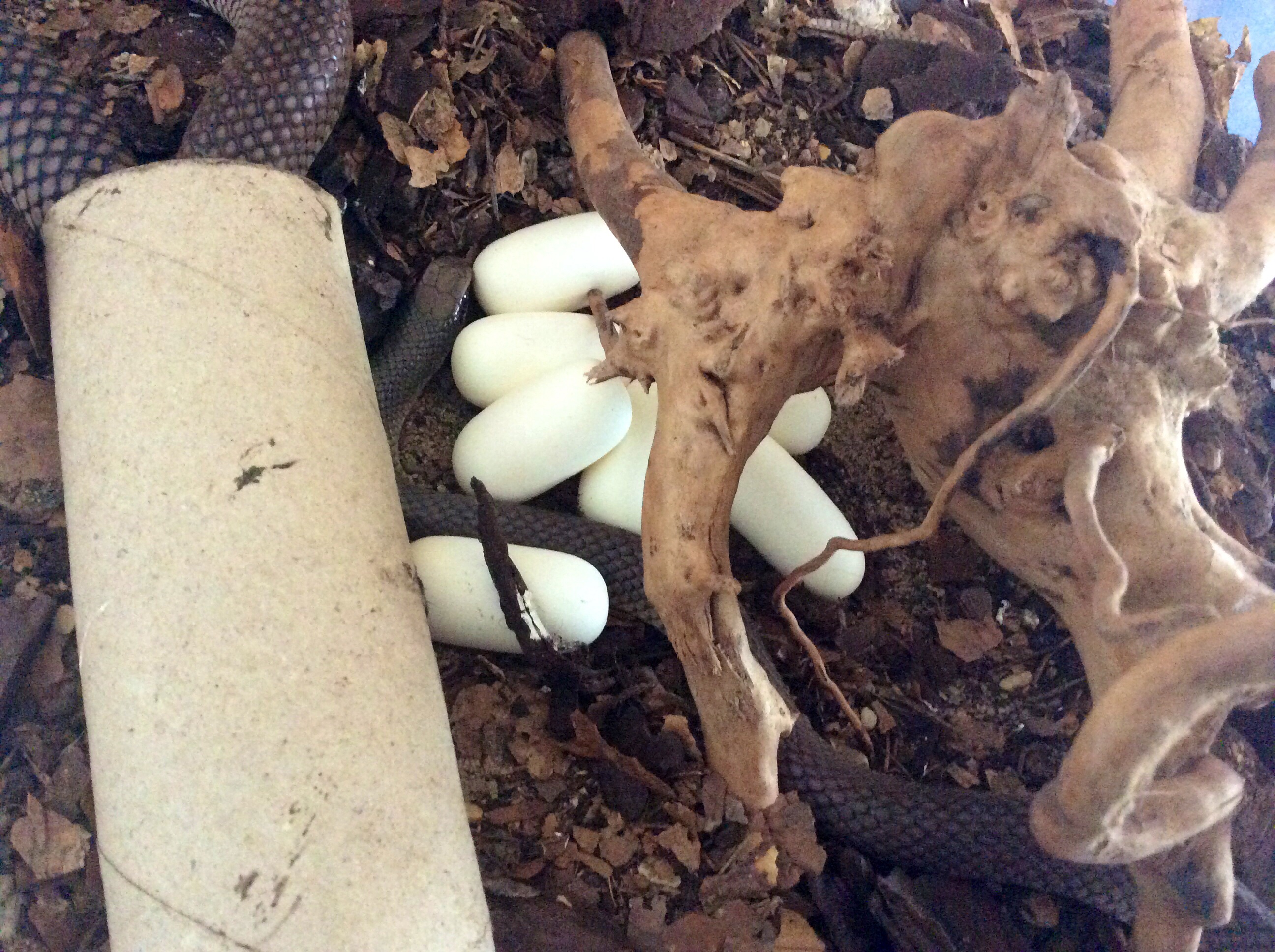 Dnešní snůška Lampropeltis tiangulum syspila. Snůška po 38 dnech od prvního páření, 7 dní po svleku.
