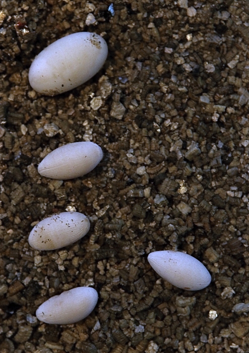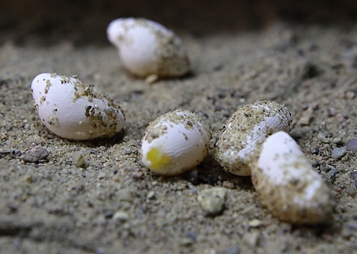 Zdravím, před týdnem jsem si pořídil údajně 11 měsíční samici. Přišla mi docela vypasená, ale to jsem moc neřešil. Stejně jako to, že moc nežrala, což jsem přisuzoval stresu z přesunu a novýho prostředí. Byla spíš klidná, nehrabala a tak mne vůbec nenapadlo, že může být gravidní. Dnes ráno jsem našel v teráriu 18 vajec, všechna byla poházená na plošině. Jedno je pěkný, pravidelný, všechna zbylá jsou ale poloviční, trošku svraštělí šišoidi, většinou s takovým jakoby okýnkem ve skořápce. Může ten tvar souviset s tím, že je prvorodička, nebo ještě příliš mladá? Může z těch vajec něco vzejít? Jak dlouho trvá, než se vejce znehodnotí, je li ponecháno takhle na vzduchu, případně je to rovnou navyhození?