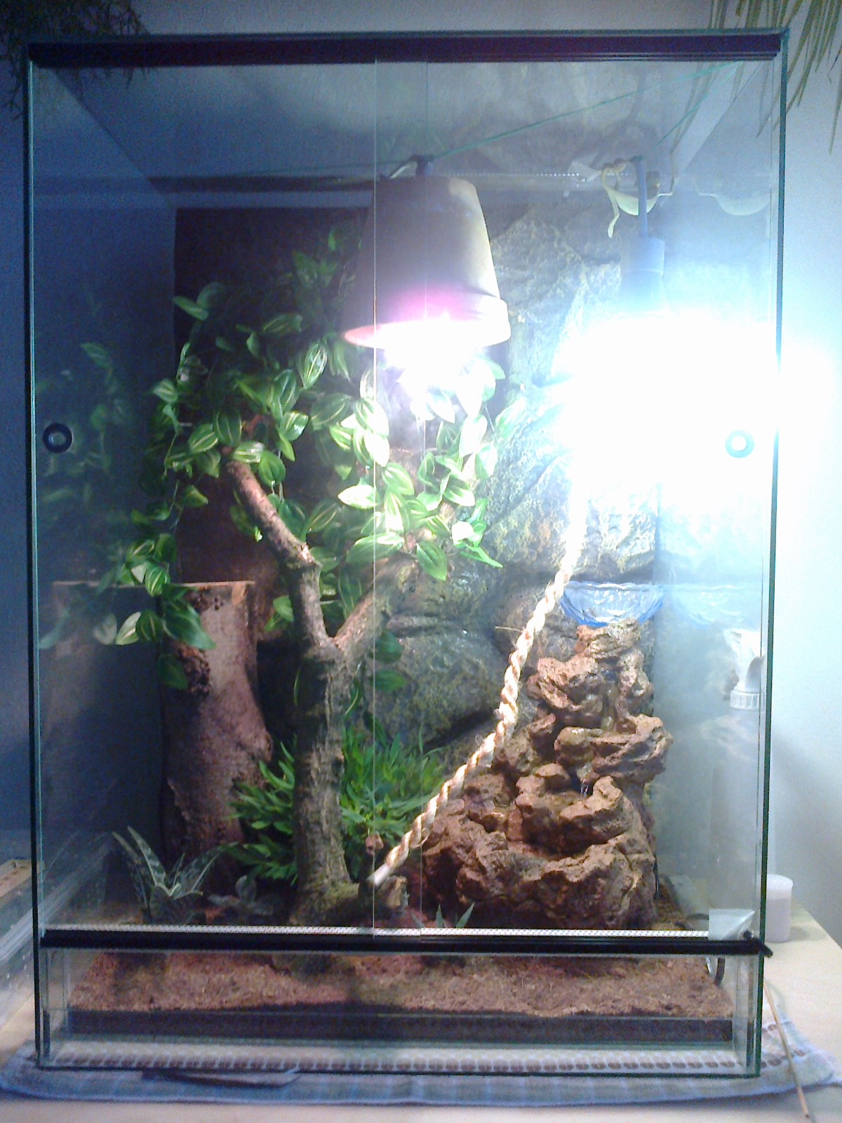 Ještě doplním, náhodou máme terárko od stejnýho výrobce - resp. vypadá stejně a to tam máte ještě jen jednu věrací lištu nahoře - takže je to dost zoufalý větrání - sice to jakž takž táhne tím spodem, ale to mi pro cháma přijde málo... Ale hlavně ten vodopád hned pryč a pamatovat na to při rošení, v tomhle tera to dost mizerně vysychá...
