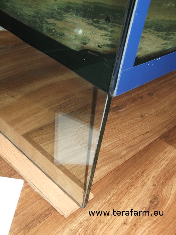 Nosné sú bočné steny, dno je nalepené medzi nimi, predná a zadná stena je robená ako posledná. Je nutné postaviť to na drevo alebo niečo podobné, aby náhodou sklo neprasklo. Samozrejmosť je rovný povrch. Ak to chceš dať na komodu, jednoducho nedáš na spodnom poschodí predĺžené steny smerom dole. Na vrchnú stranu bočných stien dáš hrubšiu vrstvu silikónu, tá slúži ako odpruženie. Poschodia medzi sebou nadstavuješ buď kovovým H, zospodu je ten silikón, zhora nad spojkou infúzna hadička. Druhá možnosť je nalepiť na vrch bočnej nosnej steny sklo z oboch strán, to bude robiť zarážku proti posunu vyššieho poschodia.