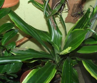 A ta druhá je ukládání ke spánku - ale jsou schopni naskládat se i na jeden list. Bohužel fotky z doby, kdy jsem strhala nevhodné pozadí. Teď mám terárium víc zarostlé a doplněné o pozadí z kůry... Každopádně v jednom takovém terárku o rozměrech jak jsem psala výše mám 2x marantu, 1x dracenu, 1x nějakou sice mimo biotop (Madagaskar), ale má tuhý listy, 2x guzmánie a pak nějaká liána z hlízy...k tomu několik silných větví. Původně jsem měla terárium méně zarostlé abych si ulehčila hledání vajec, ale pak jsem to nechala bejt a mladý odchytávám večer ze špiček listů. Neříkám, že je to ideál, to vůbec, ale jde to a vzhledem k tomu, že se zvířata i páří a mají svá oblíbená místa na vyhřívání, tak jim asi zle nebude. Nepozoruji žádné šarvátky mezi samci. Každý má své oblíbené stanoviště, odkud vysílá na samici.