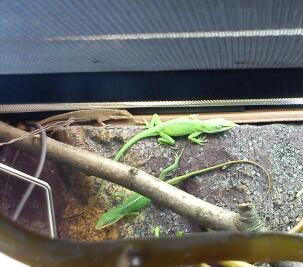 Tak vypadá to dobře.Ještě žijí všichni anolisové.I jsem zachytil jak se krmí ta samička která nechtěla.Tak ještě aby se začali pářit a bude to úplně super.