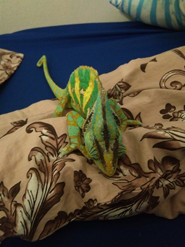 Protože se mi to stejně nezdá, že zrovna chameleon trpící na zánět pak má najednou z ničeho nic zvláštní cyklus. A ještě začne víc pít. Ale ráda se poučím.