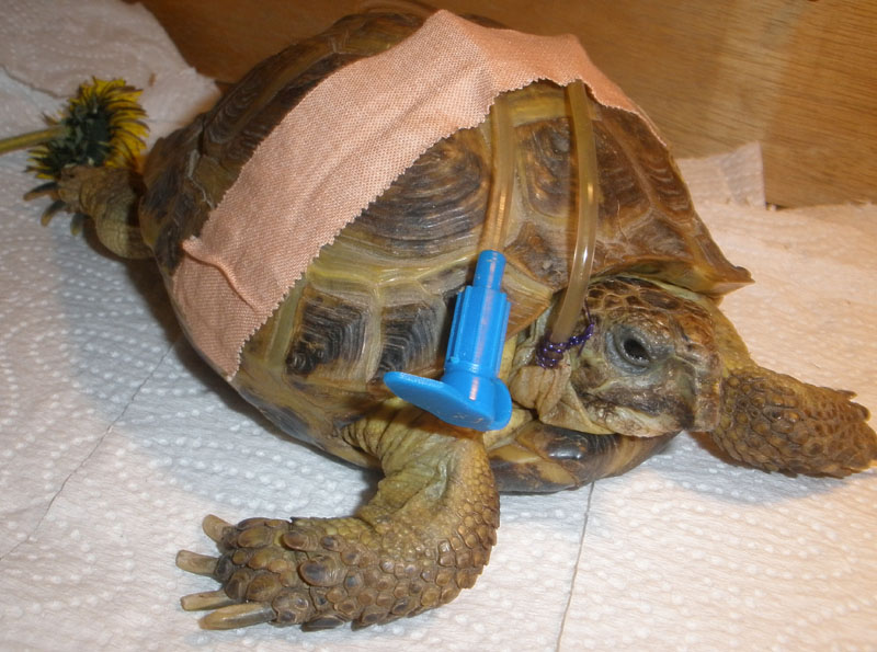 Želváka mám doma, krmím sondou (a klepu se strachy, že si s ní něco udělá, vytrhne, hnusný pocit...)…