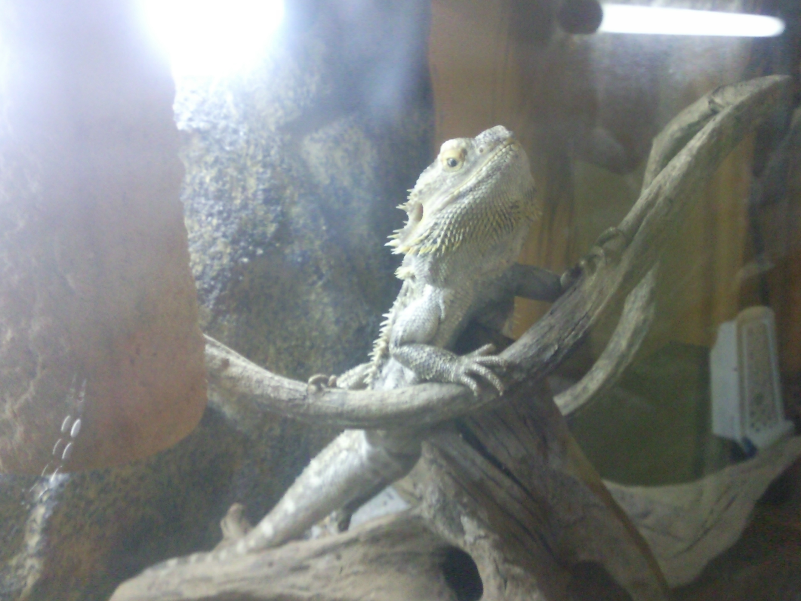 Ty už tam nejsou. Jsou to už starší fotky - a ty tam měl předešlý majitel. Zářivku máme Exo-Terra Repti Glo 10.0 (45 cm) Je cca 40 cm nad nima. Ale lezou až k ní po pol.pozadí.