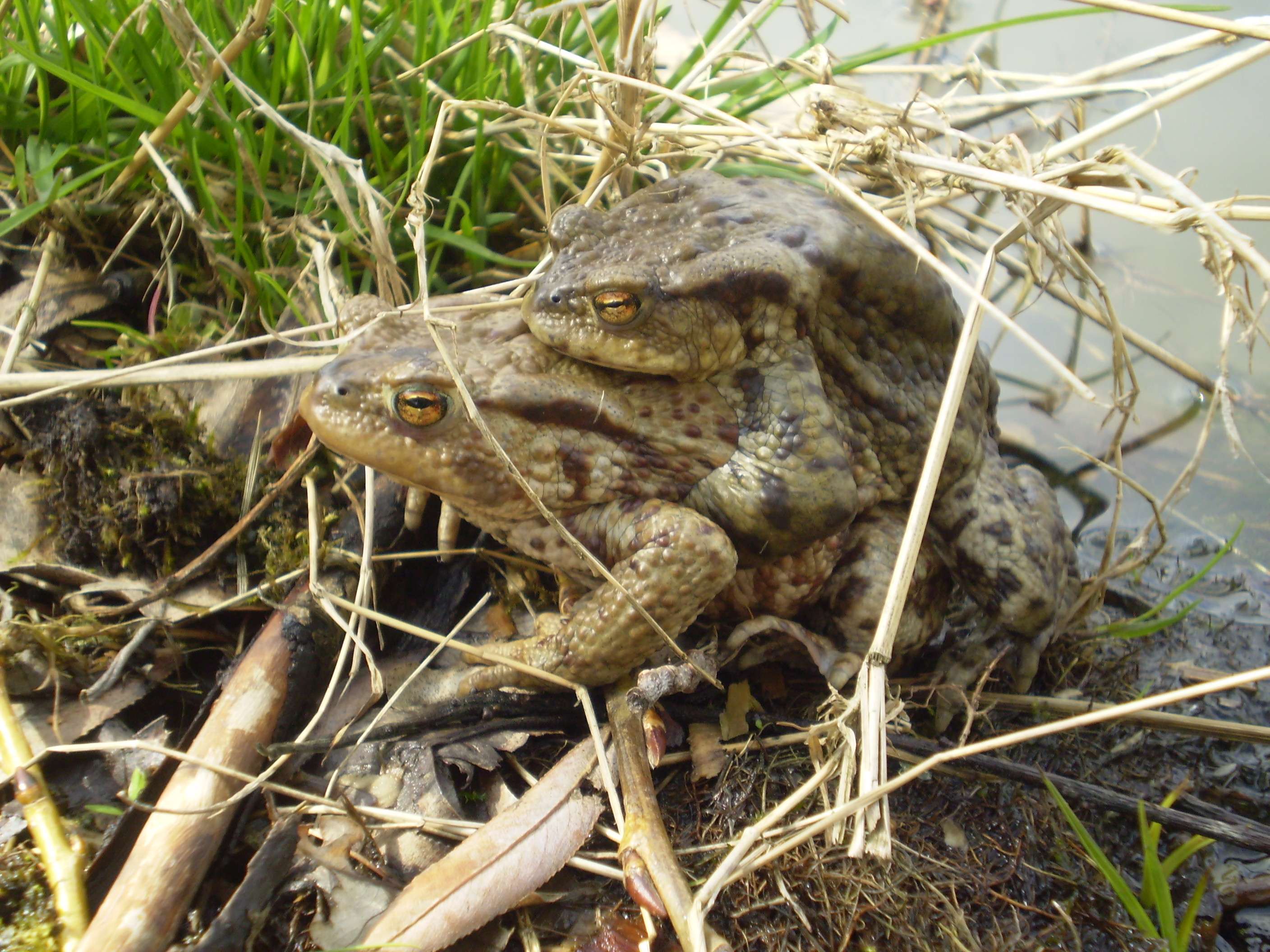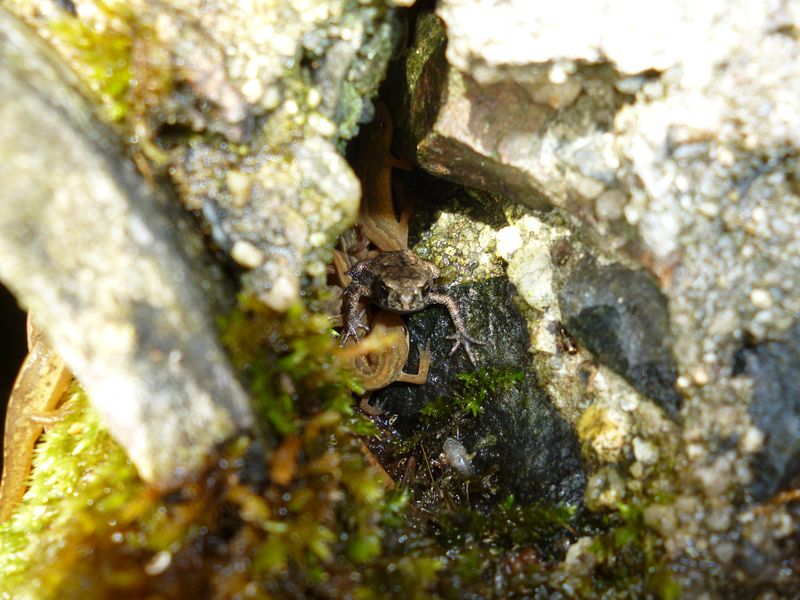 perenquen: To je otázka, ale taky mě to hned napadlo. Kanál je hluboký necelé dva metry, s vlhkým dnem a napadanými prkny, pod kterými se žabky ukrývají. Při vyrušení se snaží utéct menšími odtokovými kanály. Když jsem jeden kus kvůli určení na světle vytáhl nahoru a dal do vody, druhý den jsem jej (pravděpodobně ten samý, soudě podle velikosti a nevýraznosti zbarvení) našel opět dole v kanále. Zajímalo by mě, jestli se tam dostávají někudy spodem, nebo, jak říkáte vy, tam prostě zahučí.
