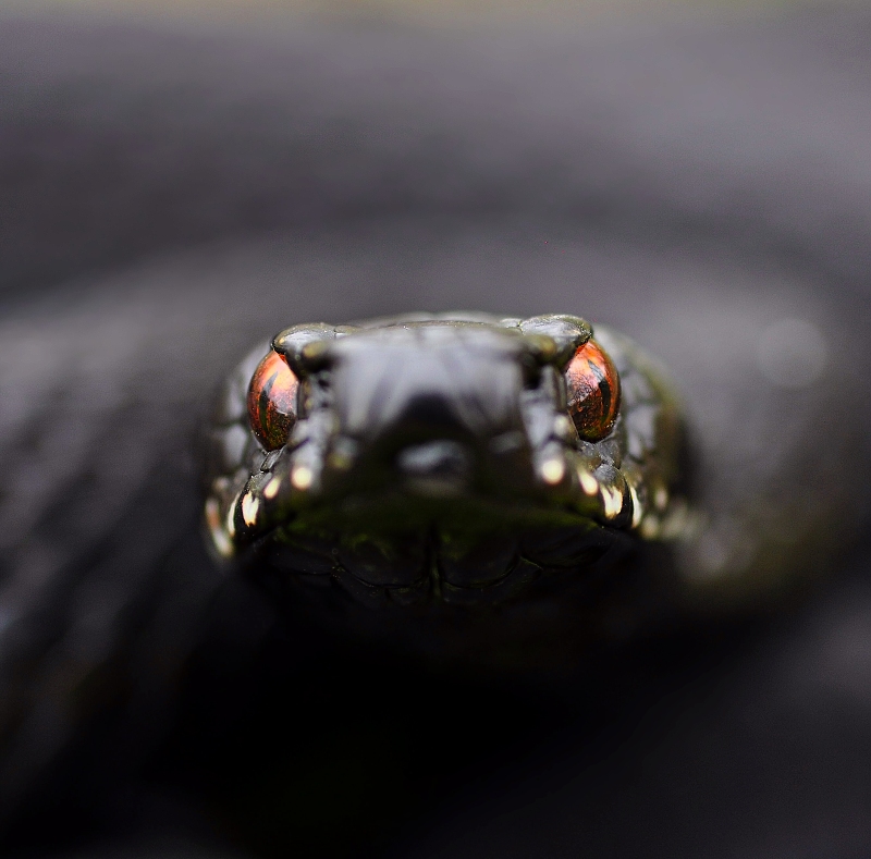 Nenapadá někoho, co má s okem? Mladá užovka, druhé bylo normální.