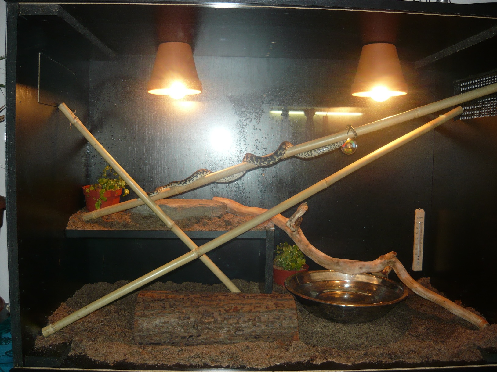 Este k tomu terariu....na lavo ziarovku zves nizsie, aby na plosine bolo cca 40°C a druhu zrus uplne…