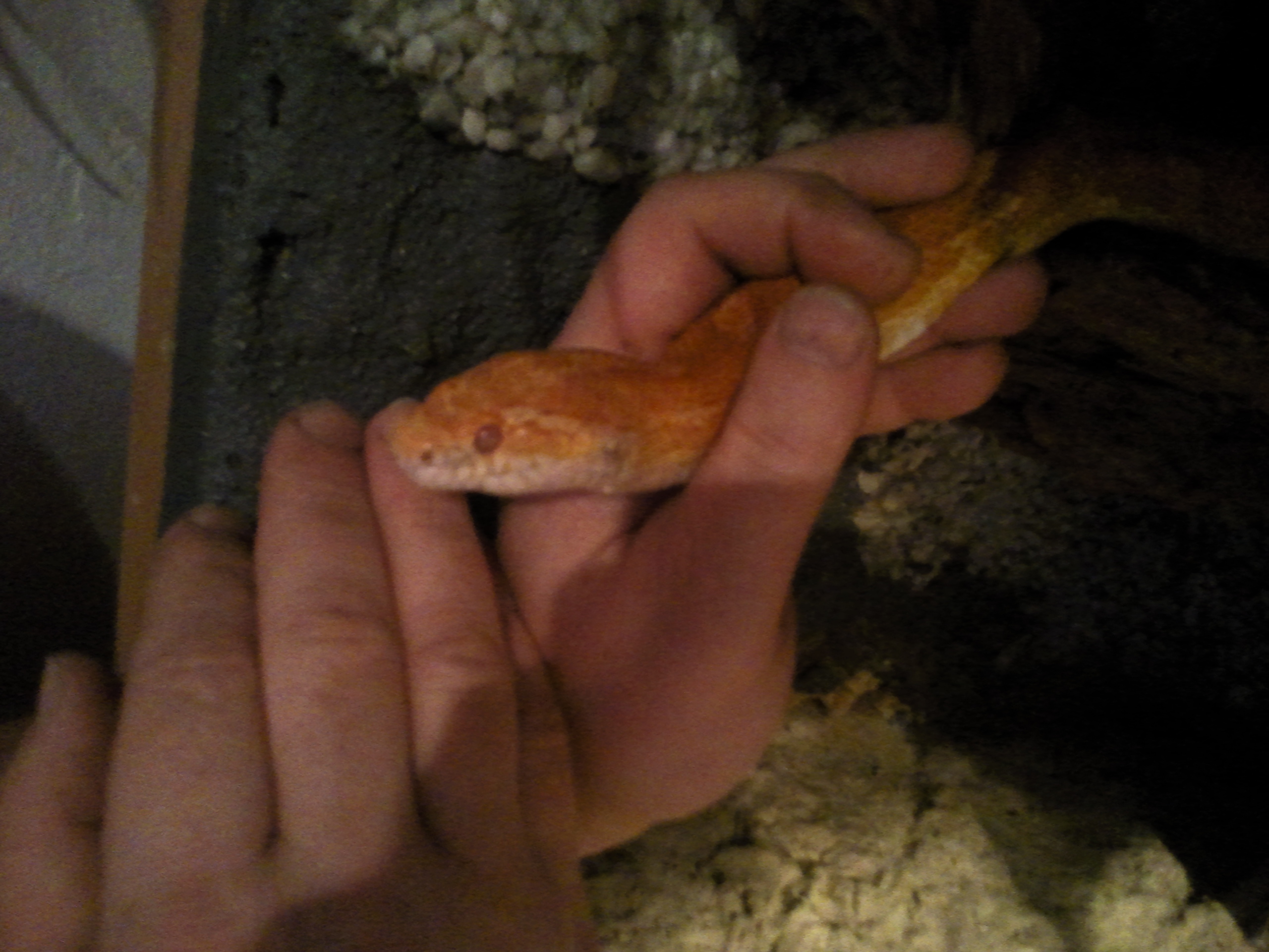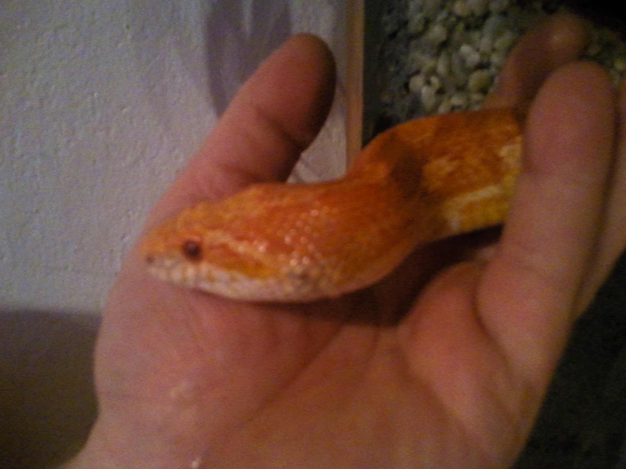 Tak jsem dorazila konečně domů a mám fotky,není to sice nic extra,ale snad to pomůže.Nějak se mi nedařilo hada pořádně udržet v klidu.A popis na omak?No,tvrdá boulička pod měkkou kůží.Máte asi pravdu,že bude nejlepší dojít k veterináři,ale prvně jsem chtěla zjistit,jestli náhodou někdo neví co by to mohlo být a jak hadíka z toho dostat než jí traumatiizovat cestou k veterináři.Ale asi mi nebude nic jiného zbývat.A zjistila jsem,že teda i z venčí už má mezi šupinkami jakoby černou tečku,snad to pomůže...