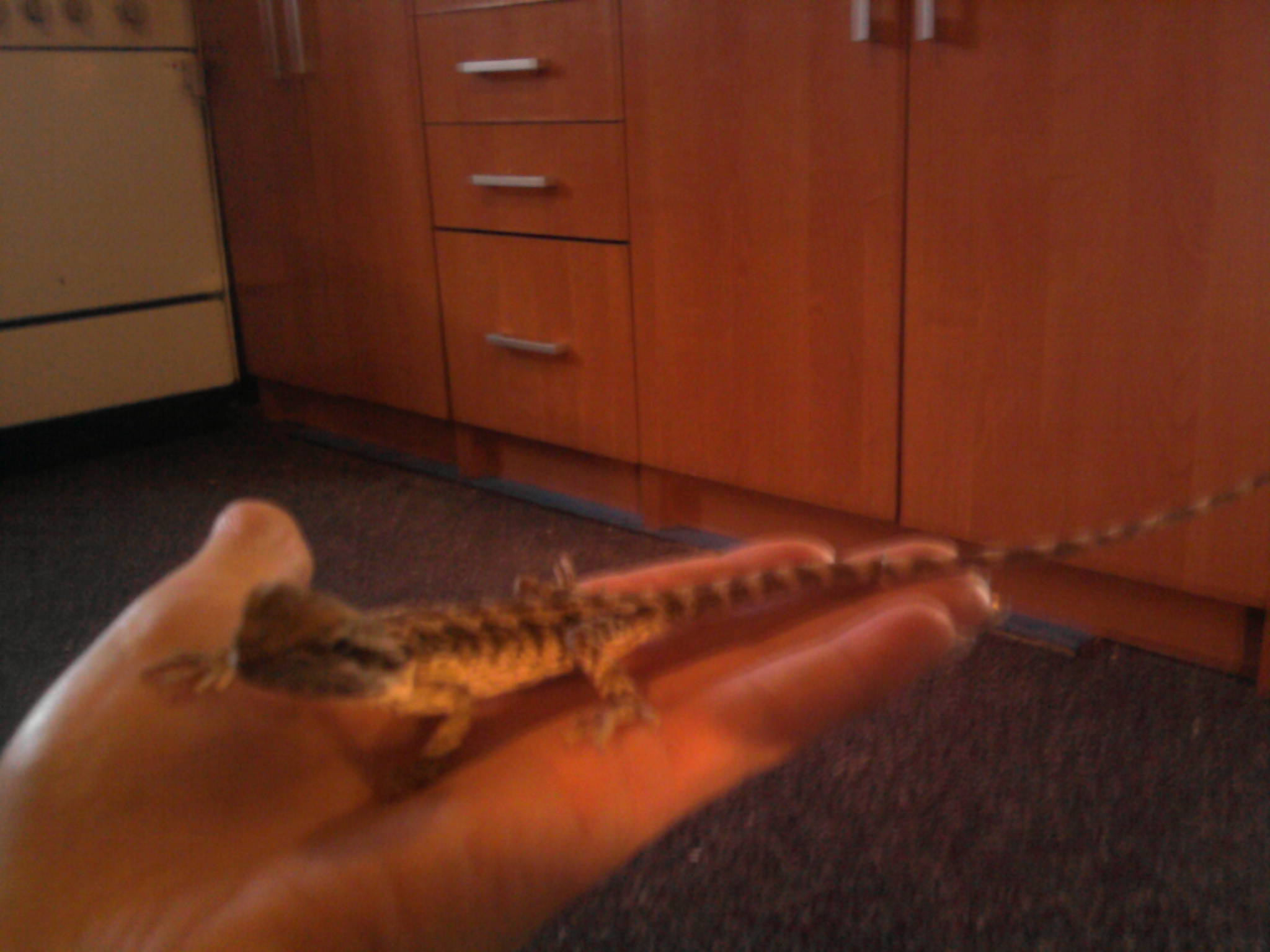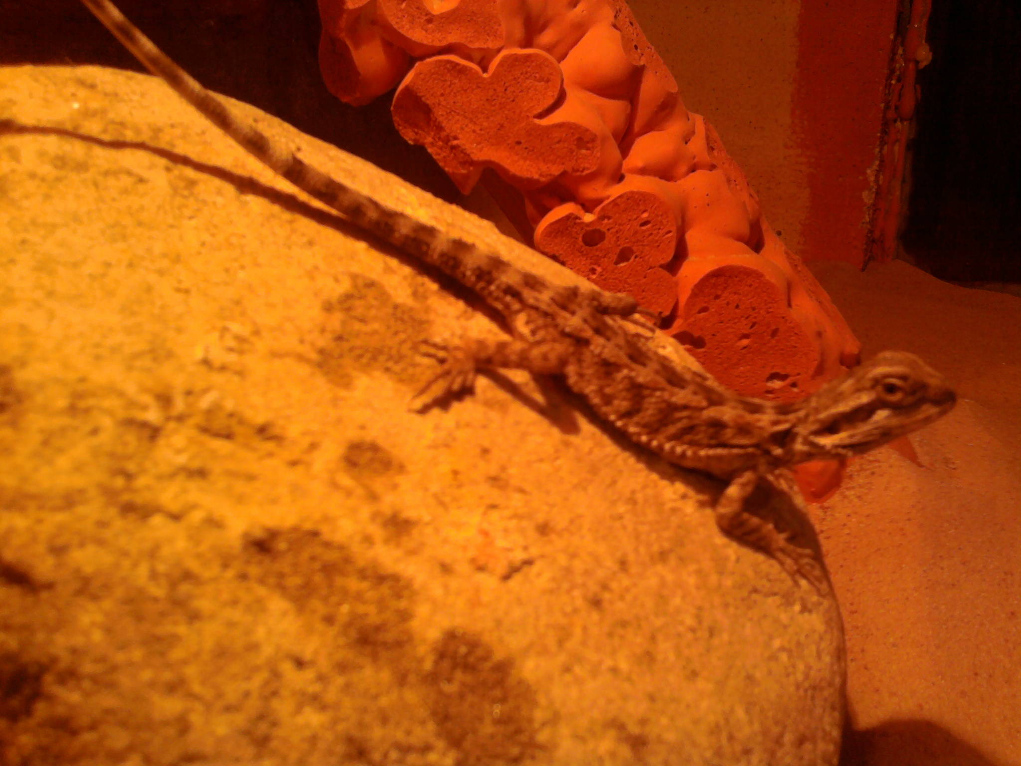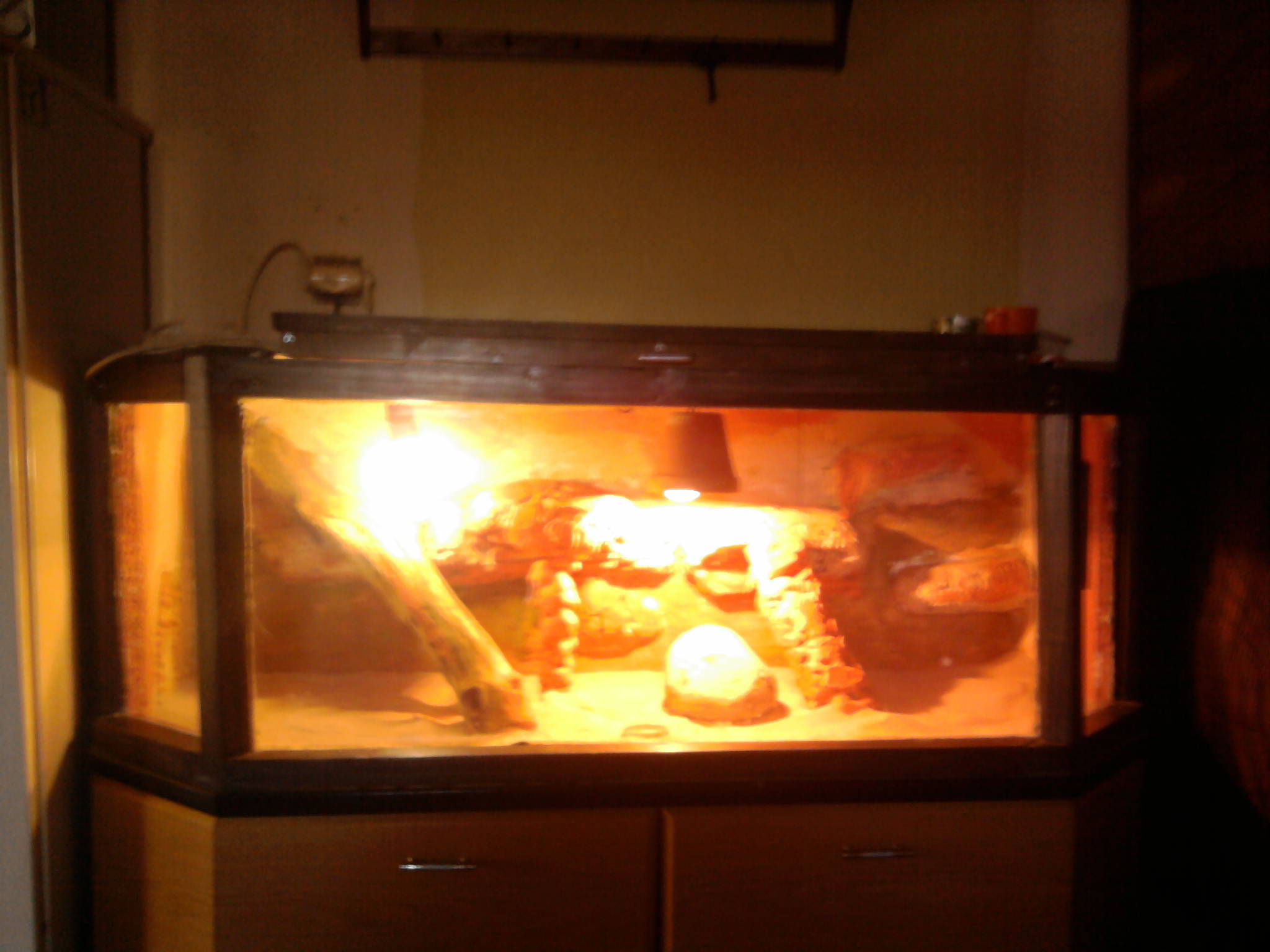 Tady jsou fotky.Máme žarovku repti Glo 5 UVB a klasickou žárovku A krom červu a zeleniny jedla aji cvrčky má tam rozemleté skořápky vodu dávám deně čerstvou a pije i z kapátka.Na ruku si vleze pěkně ale někdy z toho prospí i ceý den za odpivěd děkuji Iví