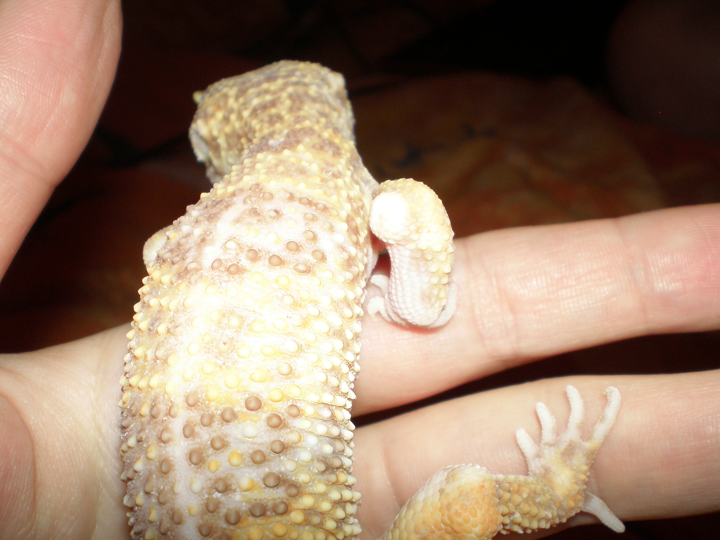 gekončík noční-hubne a kolem kloubů má bouličky.