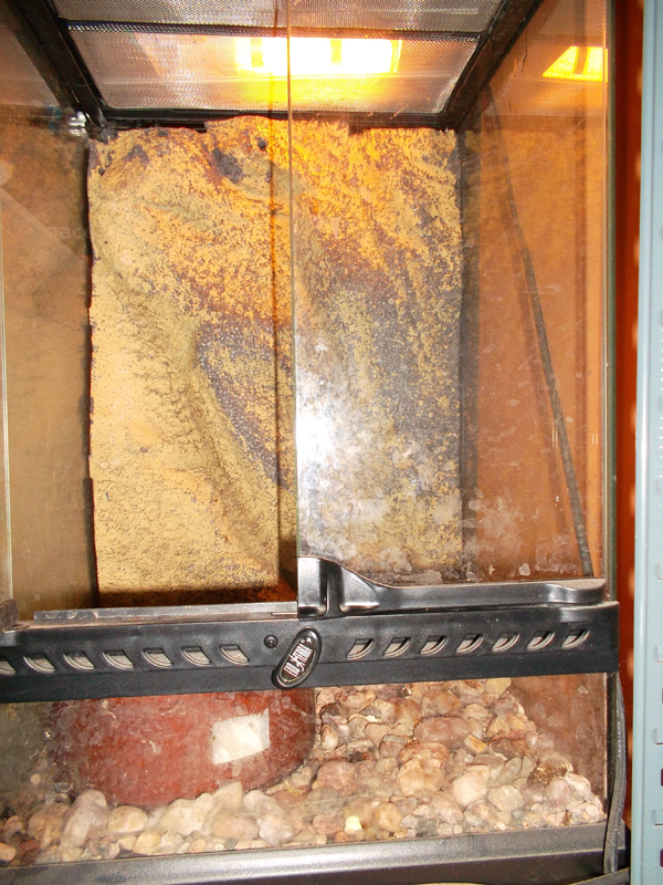 Tady veterinář na plazy je až ve všední den tak ho tam zítra vezmu.podmínky chovu,terárium EXO TERRA vybaveno pro plazy originál od výrobce.Ob 3 dny měněna voda.strava:zelenina,někdy ovoce,cvrčky,velké kobylky,jednou mě zbylo holátko po krmení malého hroznýška.Kdybych zanedbal chov tak už by byl dávno tuhej a ne po těch letech.