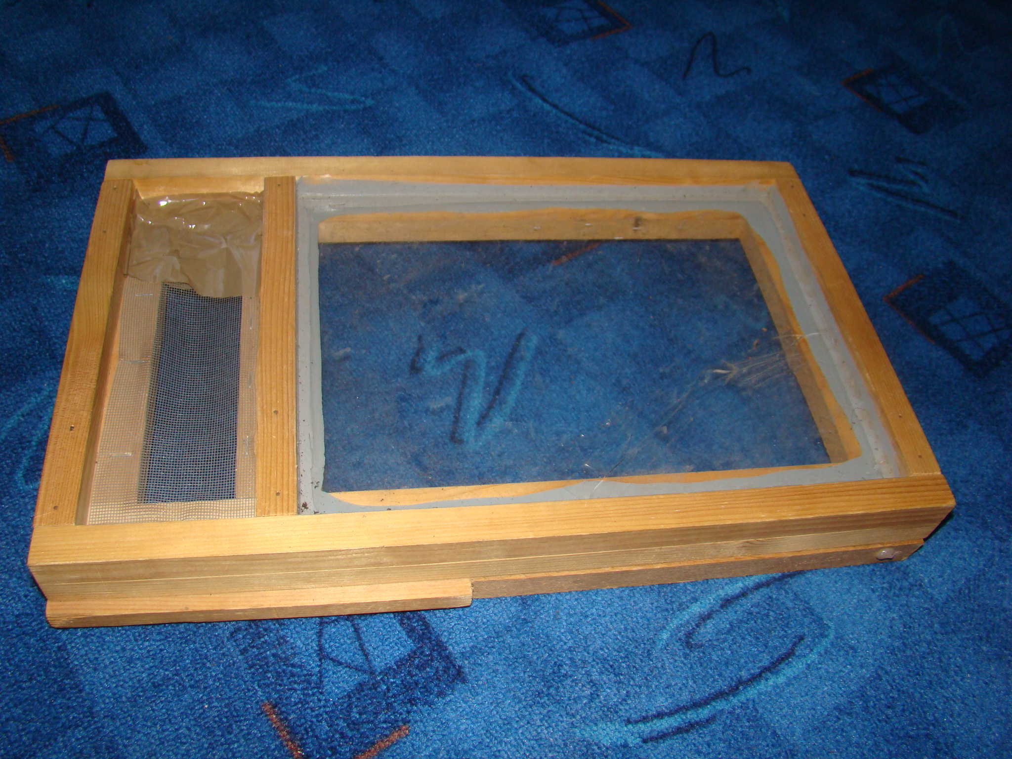 puvodne akvarko pote předelano terarko mam kryt s pletivem asi 1mm očka a zbytek sklo ve dřeve