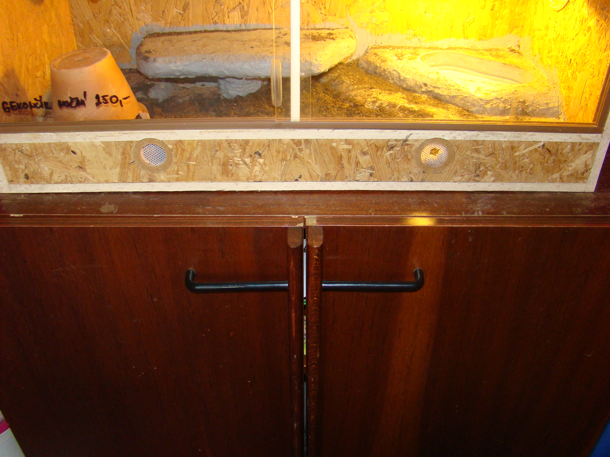 Prípadne sa dá vyrobiť z OSB dosiek, vyjde to tiež celkom lacno. V tom sucasnom je to vetranie naozaj slabe, kym urobis to nove, skus to vetranie v strope aspon zvacsit. To akvarko je strasne vysoke a tou malou vetrackou sa ti tam vela cerstveho vzduchu nedostane... Plus tam pridaj guttke nejake konare, nech moze vyuzit viac nez len to dno.. A sup sup poriadne terarko urobit