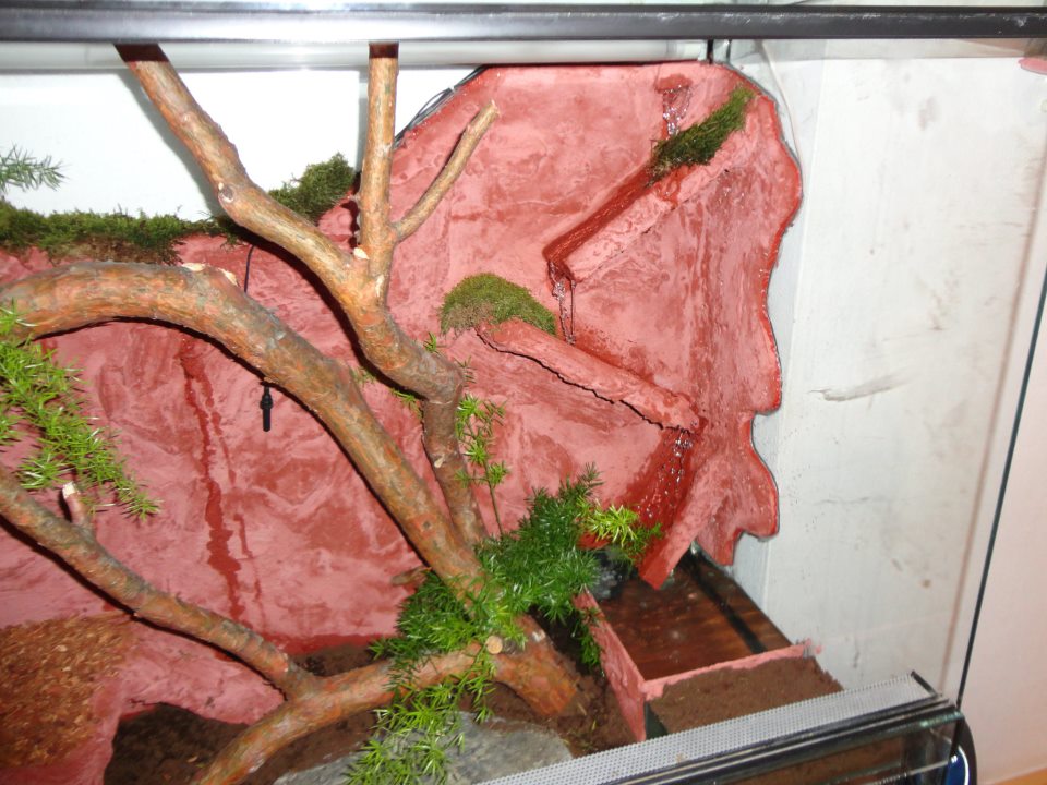 Nene, ta větev je vyschlá, nebo na videu orosená, většinou před krmením trochu porosím terárium, někde jsem četl, že hadi bývají aktivnější po dešti, určitě z toho žádná smola neteče :) Tu borovicovou větev jsem tam dal protože se to k tomu hadovi vyloženě hodí, nic jiného mě do terária nesedělo,