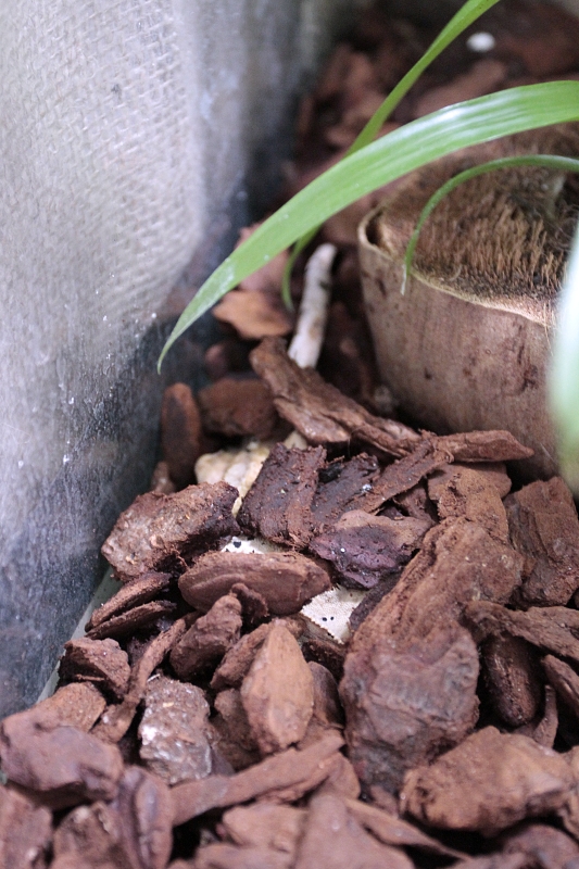 No substrát je velký téma. Měl jsem tam tera rašelinu a tu mi žrala vždycky, když se jí nepovedl útok na cvrčka. Teď žádnej problém nemám, ta kůra je cca. 15mm a víc.