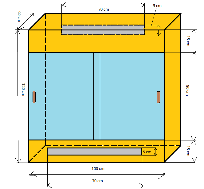 Velikost je dobrá, ale jak je řešené větrání? na nákresu vidím jakýsi dva obdélníky, ale nevím kam to patří, protože jsou přez čáru, nejsou posunutý v tom nákresu trochu nahoru? A větrání by mělo být i dole kvůli cirkulaci vzduchu.