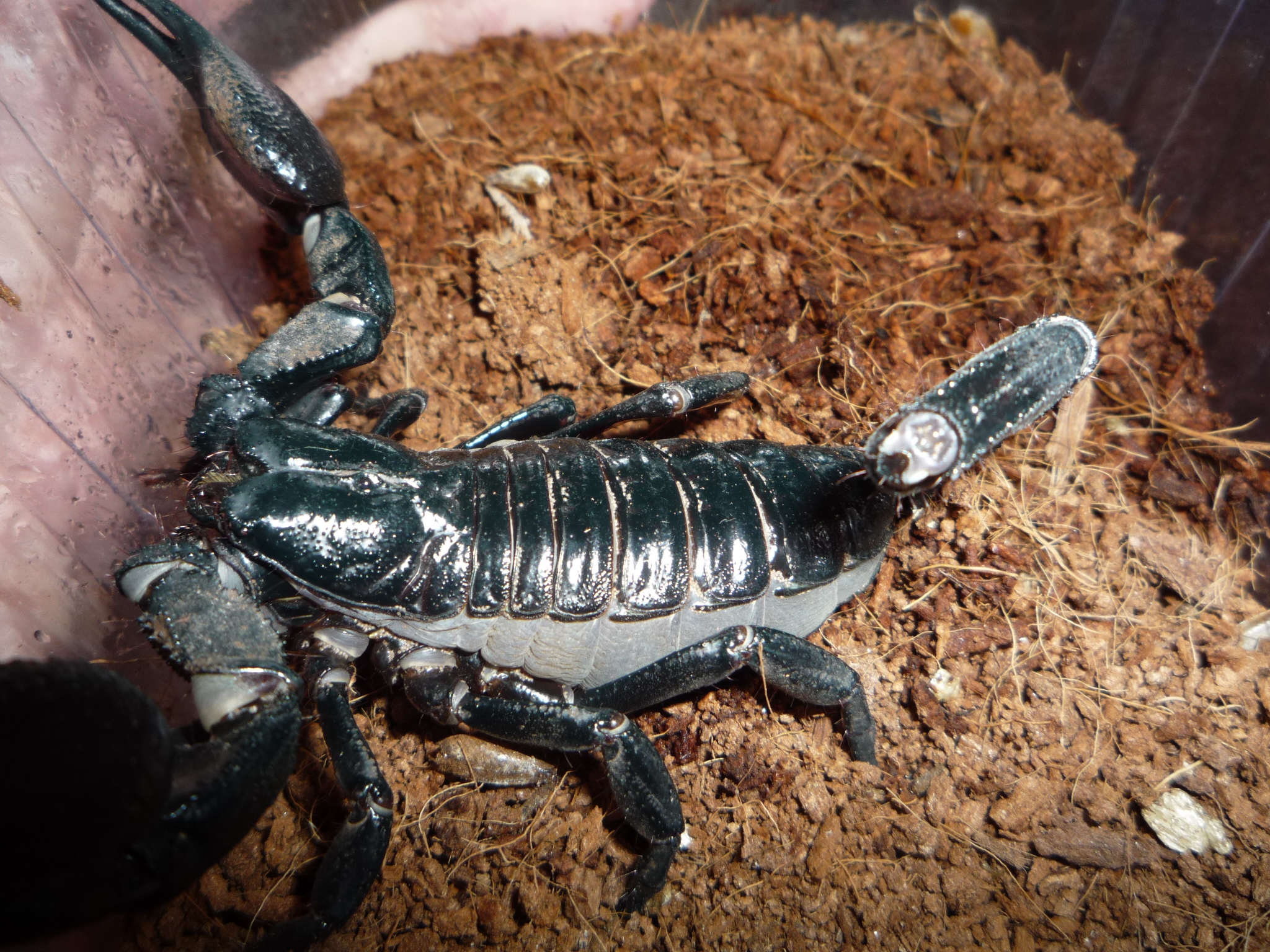 Je to poznat na první pohled podle klepet. Heterometrus je má hladké, Imperátor hrubé s chloupky.