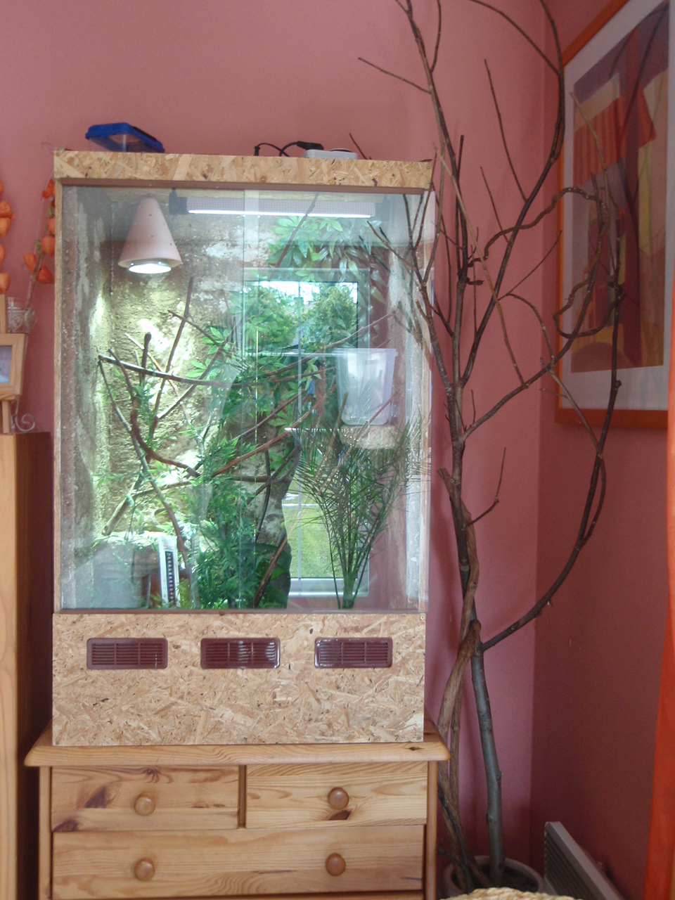 taky by to šlo,tu osb desku odmontovat a nedávat jí tam třeba vůbec,jen to celé potáhnout tim pletivem.akorát ta lampa by musela být nad terárkem alespoň 20cm,když má být vzdálenost od zvířete 50cm. proto mi zatim v mym případě přijde nejlepší sestavit jakousi skříňku z osb desek.zboku by to vypadalo asi takhle (viz foto obr.2)obr.1 je jak to vypadá vlastně teď