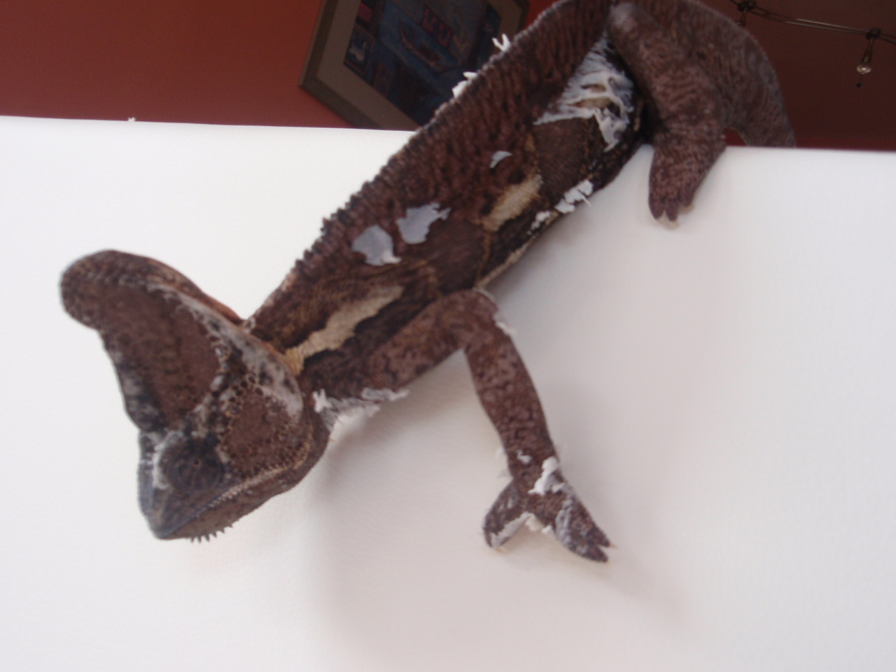 ta hnědá barva přetrvává tak 2 měsíce.když sme ho přestěhovali do novýho terárka,tak bylo ze začátku všechno v pořádku a pak to začlo.pořád se loupal,ale to bych fakt řekla,že má z tý špatně umístěný výbojky.mezitim jsem mu to ještě víc vyvětvila,aby měl kde lést a cítil se tam víc v bezpečí.a ještě než sem to vyvětvila,tak když sem přišla k terárku,tak mu moje přítomnost nevadila,když sem to vyvětvila,tak se začal bát a bezhlavě hned leze dolů nebo spíš padá.ale jak řikam,stisk má dobrej.teď mi přestal jíst,tak nevim čim to je.cvvrčkům sem začla dávat lupena z pampelišky,tak sem si říkala,jestli třeba nezměnily pro něj chuť