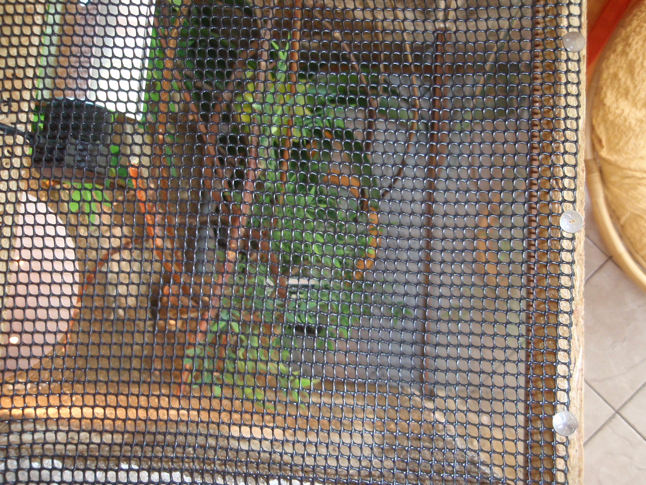jenže já mam to větrání v přední části terárka,který je široký 25cm a osb deska je taky 25cm široká.my sme to vymysleli teda tak,že ta část stropu,co je z osb desek by se odšroubovala a zvedla by se třeba o 30 cm,či-li by z toho vznikla taková skříňka,jak si mi ty psal.a všechno světlo by tak šlo do terárka.jinak ta mřížka je plastová a ty oka jsou asi 5mm široký (viz foto).Jinak sem mu tu výbojku vyměnila zatim za 40W obyč žárovku,ale asi tam budu muset dát 60W,ta 40 mi přijde slabá.zkusim to tak nechat ten týden dva a uvidim,jak bude reagovat...ale možná by tam šla dát i ta laťka nevim,co je lepší teda