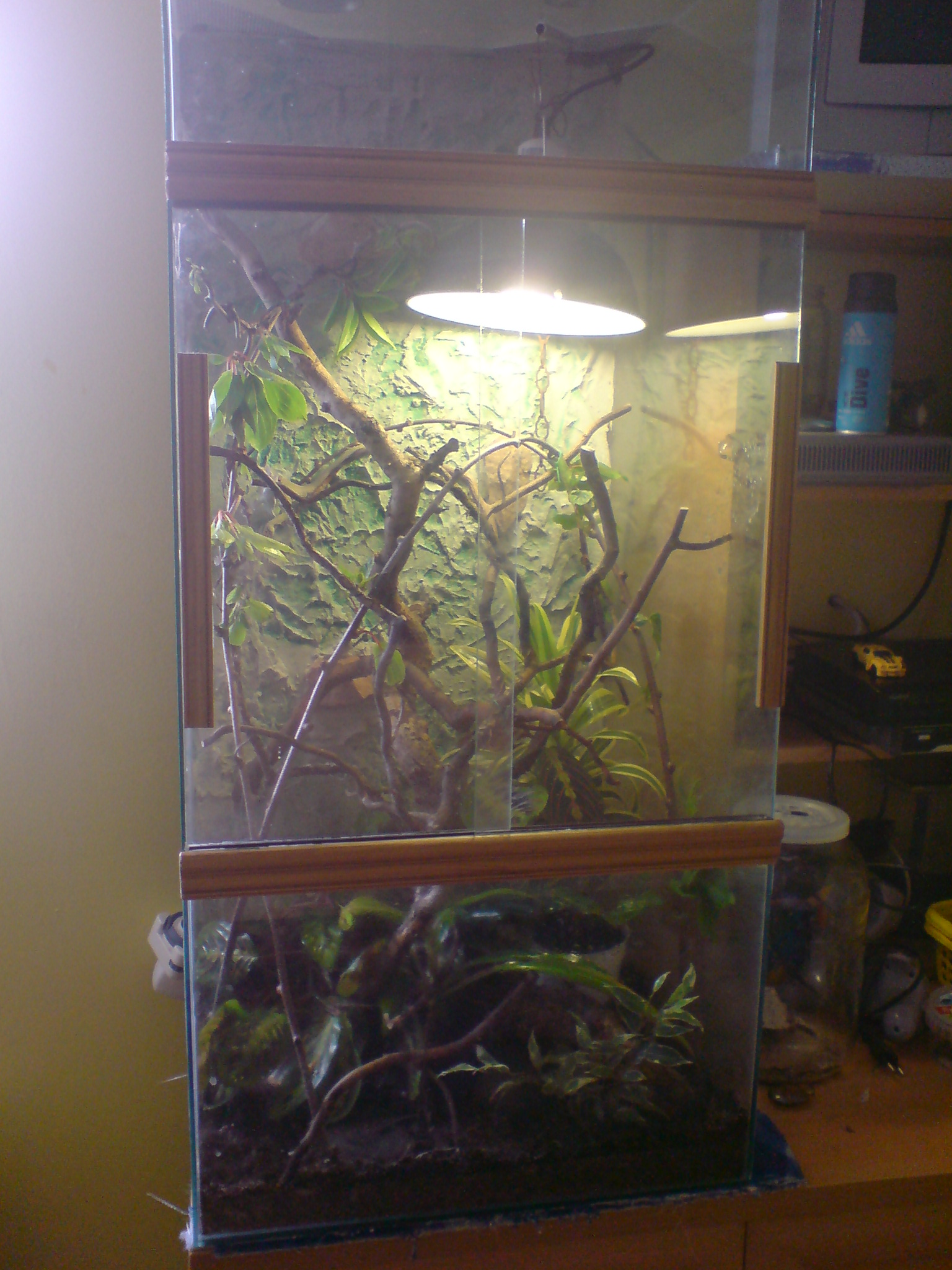 kde je vetrani? nikdo ho nevidim.. urcite by to chtelo predelat to terarko.. vetrani na cely strop. na to dat ten cylindr s vyhrevkou. a uvb dat dovnitrku.. pridat vetve a koupit nejakou umelou kvetinu s hodne listama aby mohl cham pít.. ale hlavne to vetrani