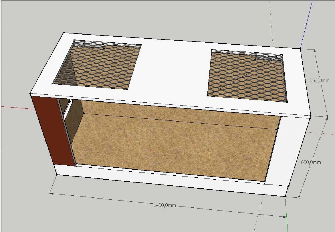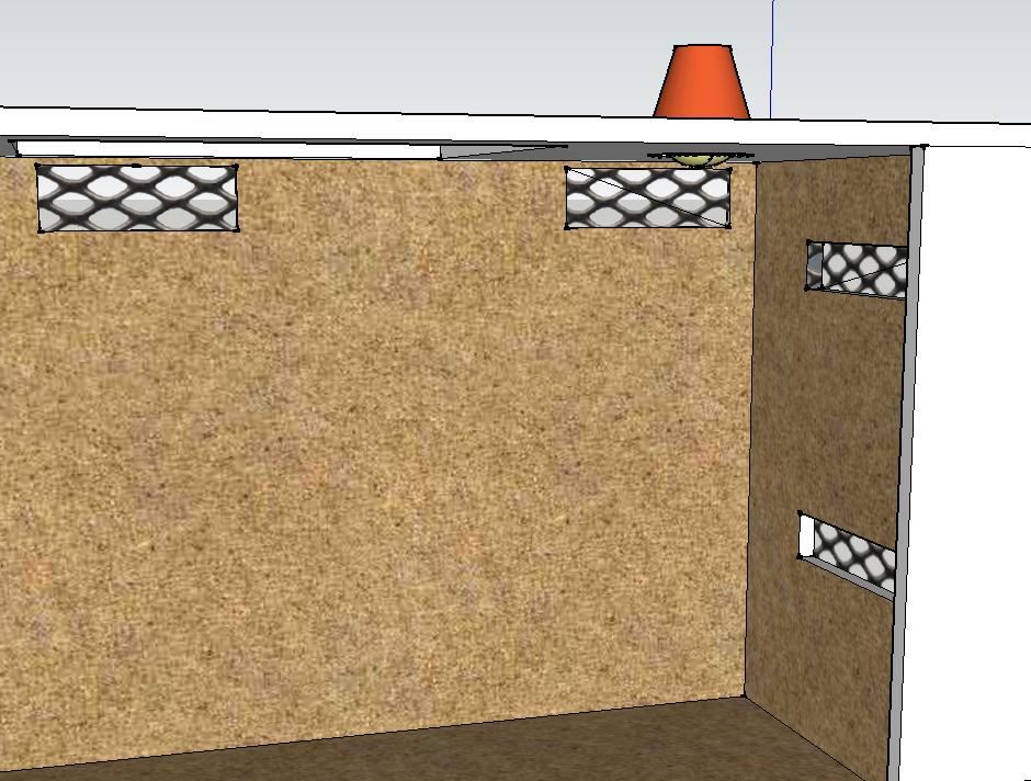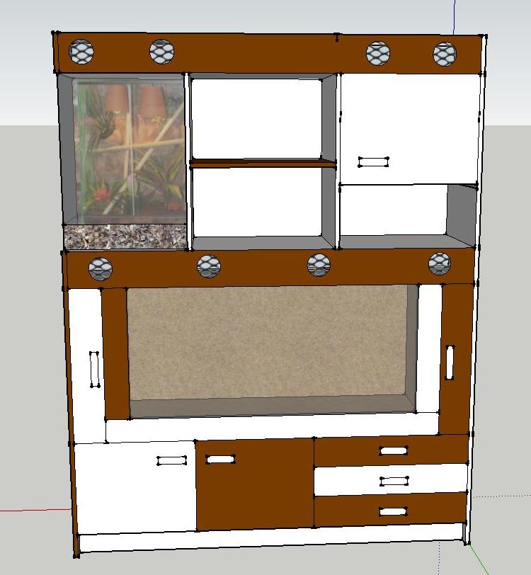 1)Na obrázku 1 a 2 je naznačeno větrání samotného terária, hlavně díky velkým plochám na "stropě" by to snad mělo být ok, jen se chci zeptat, zda můžou být větrací otvory takto umístěny, aby tam nevznikal průvan a aby to plnilo svou funkci? Celé terárko bude vloženo do skříně, a bude celé odvětrávané, viz obrázek 3 a 4. Celá sestavena bude přiražena ke zdi, takže zadní čelo nebude, ale raději udělám větrací otvory i z boku a ze předu. Myslíte si, že bude celkové větrání terárka dostačující? Nebude se zbytečně držet "špatný vzduch" v meziprostoru skříně a terárka a bude cirkulovat i mimo? Nemáte někdo z podobným umístěním zkušenosti? Terárium bude zasazeno do celého kompletu obr. 5, a aby bylo možno v případě potřeby terárium vyndat, volím tuto možnost udělat tarárium zvlášť a potom vsadit do skříně, to jenom na vysvětlenou proč neudělám terárko rovnou ve skříni.