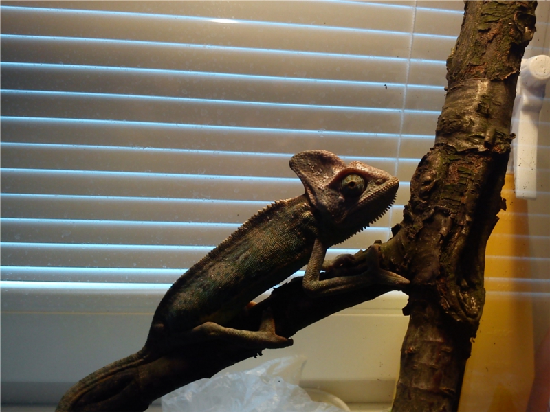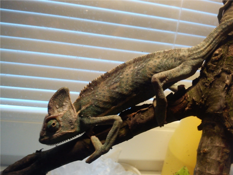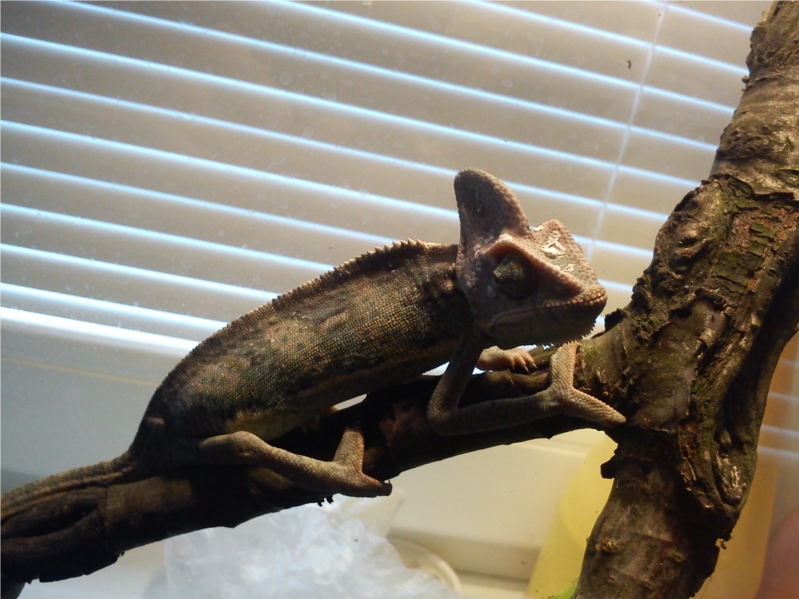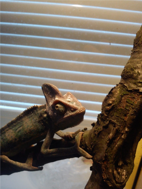 Nejsem si ani jist, jestli nám chameleona prodali zcela zdravého (viz kůže na hlavě).