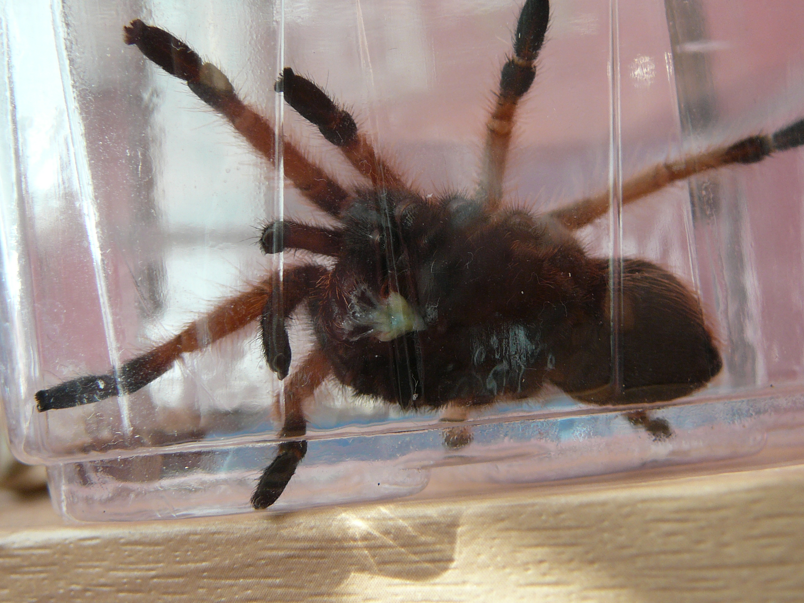 Dnes ráno jsem svým třem pavoukům měnila podestýlku a čistila terária. Když jsem je odchytávala, tak jsem si konkrétně u Boehmei všimla, že má u ústního otvoru jakoby hleny (viz.foto). Nevím jak to jinak nazvat. Ptala jsem se dvou známých, kteří také chovají sklípkany a ti to viděli poprvé v životě. Mám docela obavy, co to je.