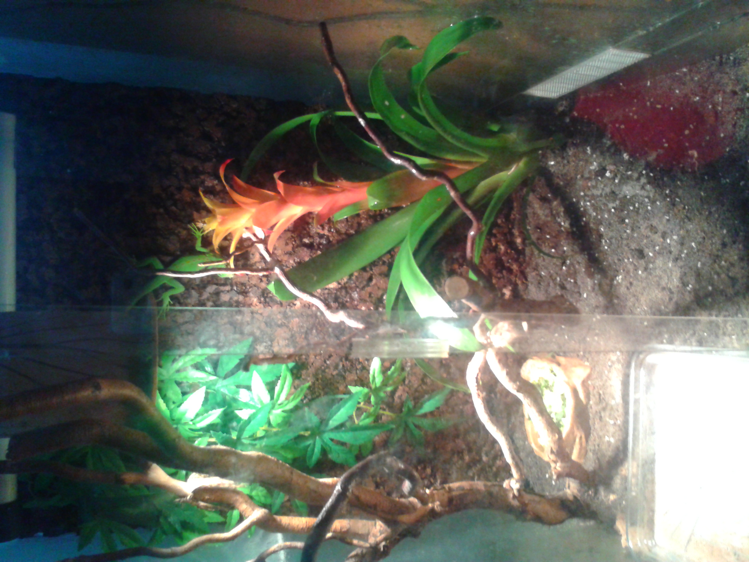 , Muj leguan cca 2 mesice neustale hrabe na jednom miste. Nevim proc ... Dnes jsem mu do teraria koupila zivou květinu (viz. foto)